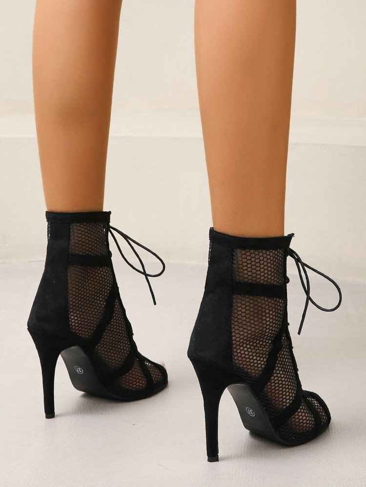 ・メッシュ&オープントゥで透け感がありブーツなのに重く見えず軽やかな印象に。