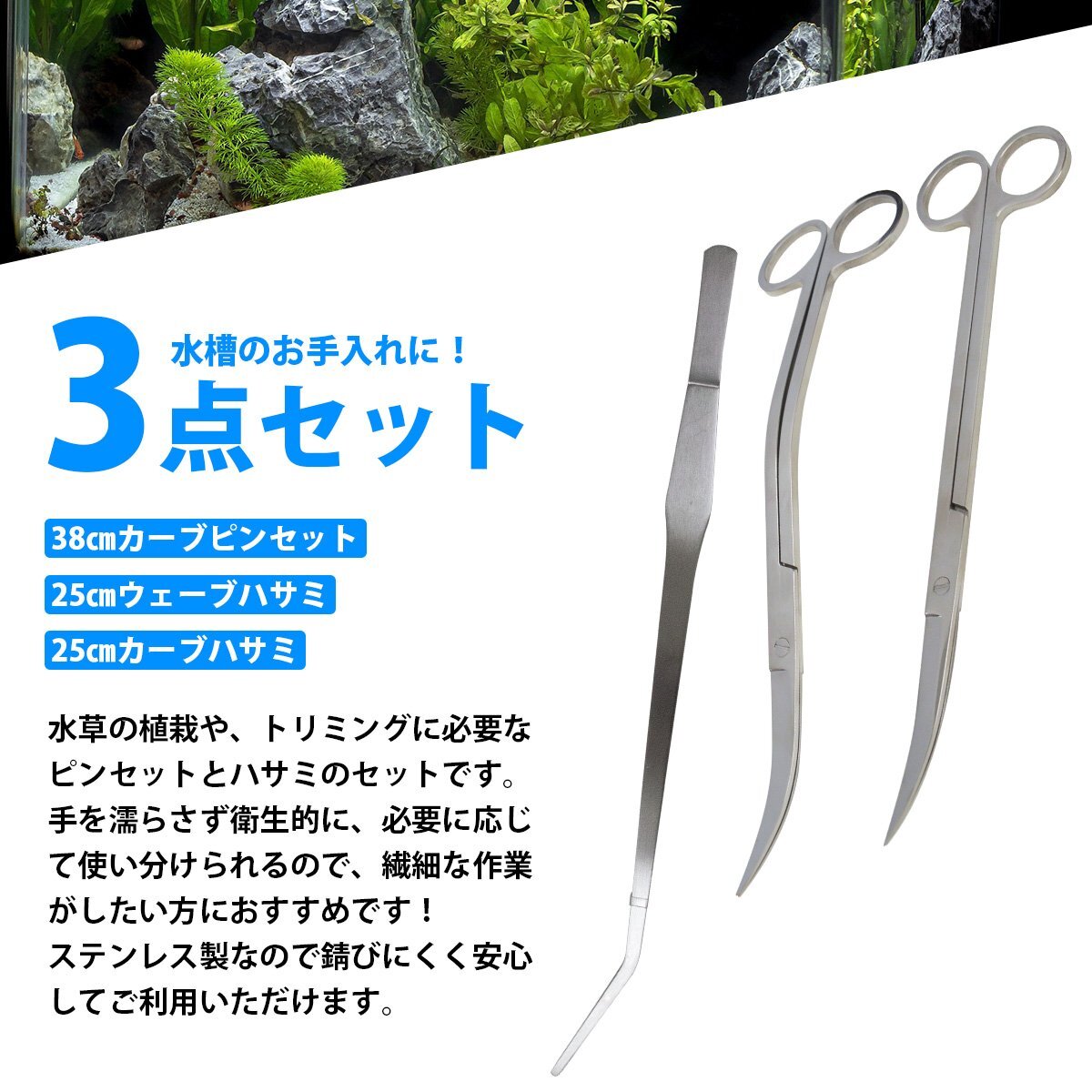 3点セット 『250mm 25cm ハサミ 2種類 & 380㎜ 38cm ピンセット』 水槽 水草トリミングキット