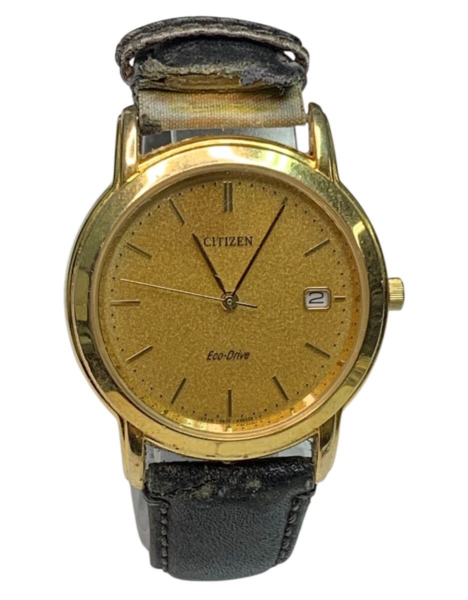 1円スタート 8279 CITIZEN シチズン 腕時計 エコドライブ ゴールド文字盤 B810-H16951 クォーツ デイト メンズ腕時計