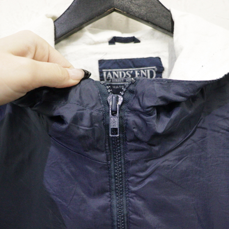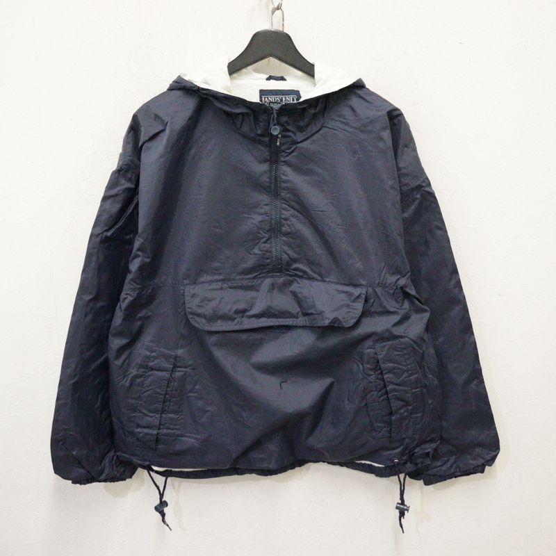 商品名 y756 90sビンテージ LAND‘SEND アノラックパーカー■1990年代製 表記Mサイズ ネイビー ナイロン フーディー 古着 アメカジ ストリート 80s