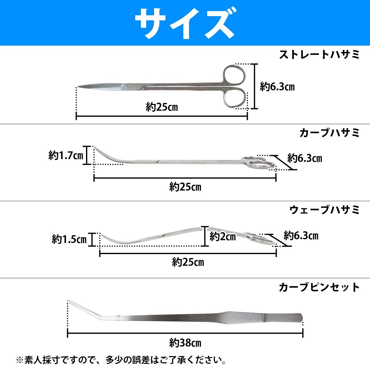 【新品即納】 4点セット [250mm 25cm ハサミ 3種類 & 380㎜ 38cm ピンセット 先端カーブ ] 水槽 水草トリミングキット