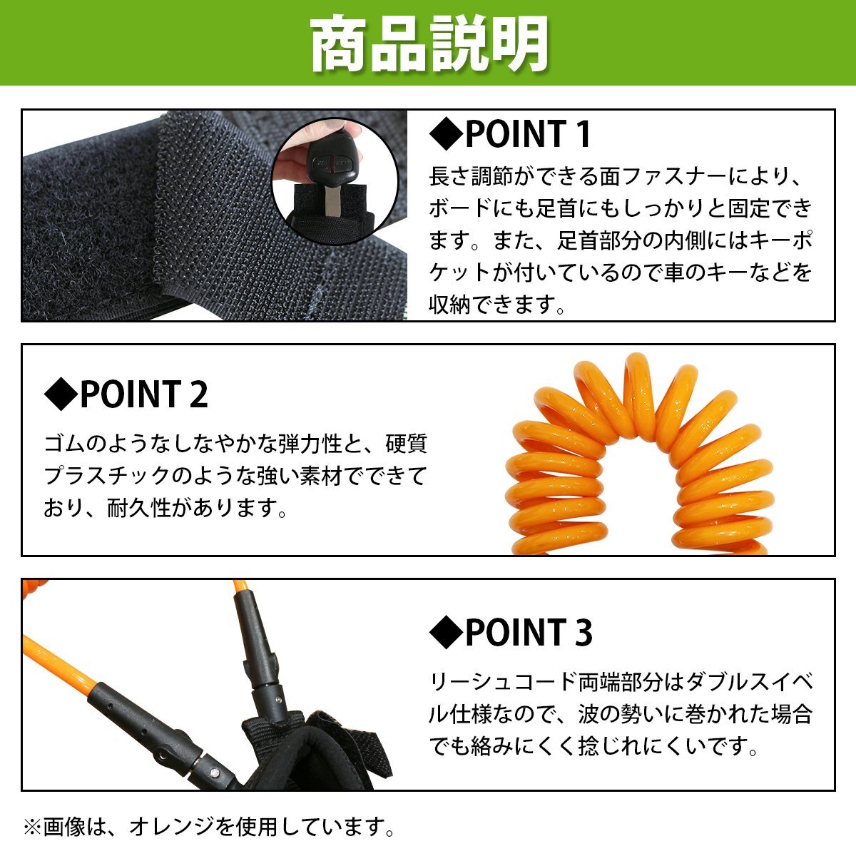 【送料無料】 コイル リーシュコード ダブルスイベル 5ft ソフトボード ショートボート サーフボード ボディボード サーフィン オレンジ
