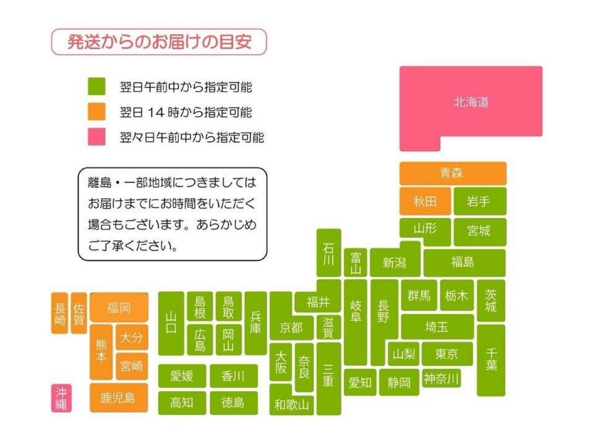 ※写真の2枚目に最短配送時間の基準図を載せておりますので、ご参照ください。