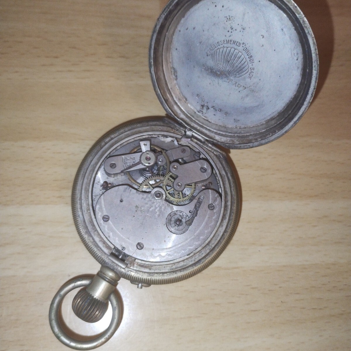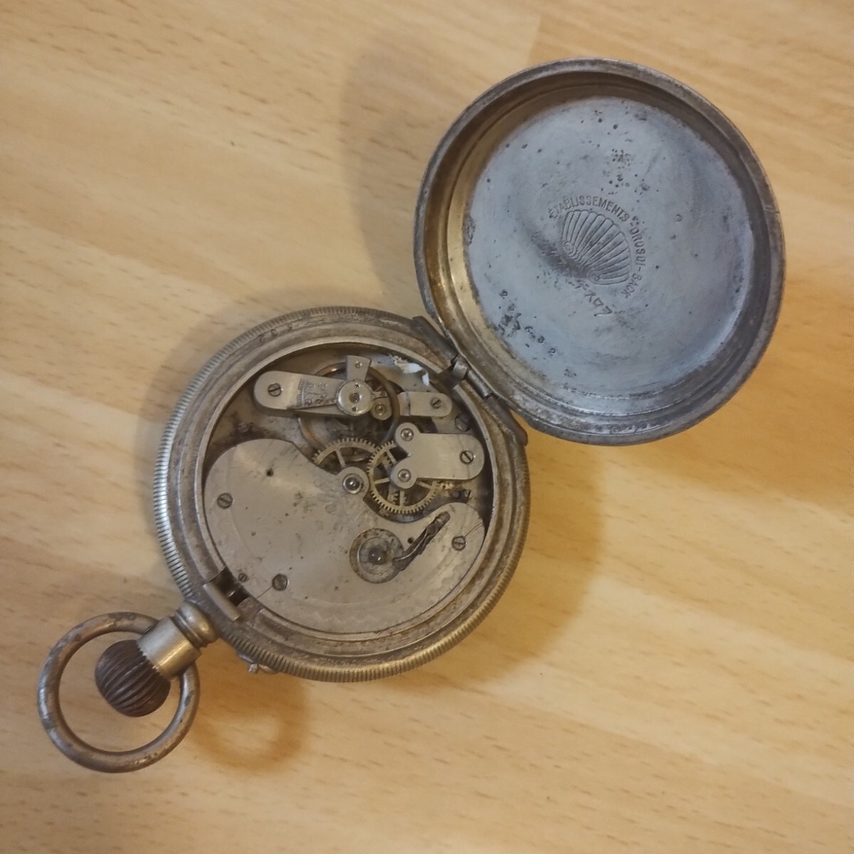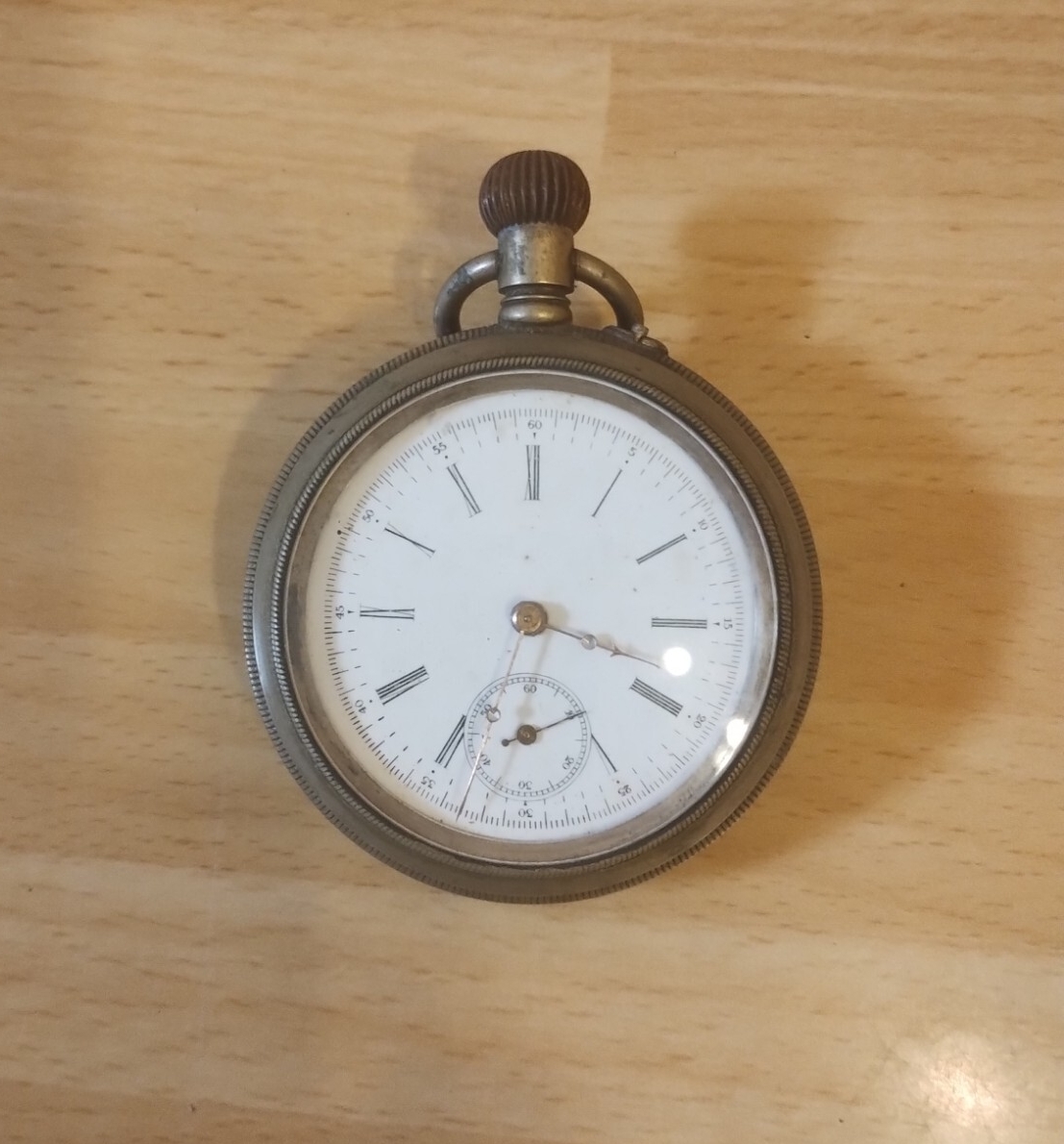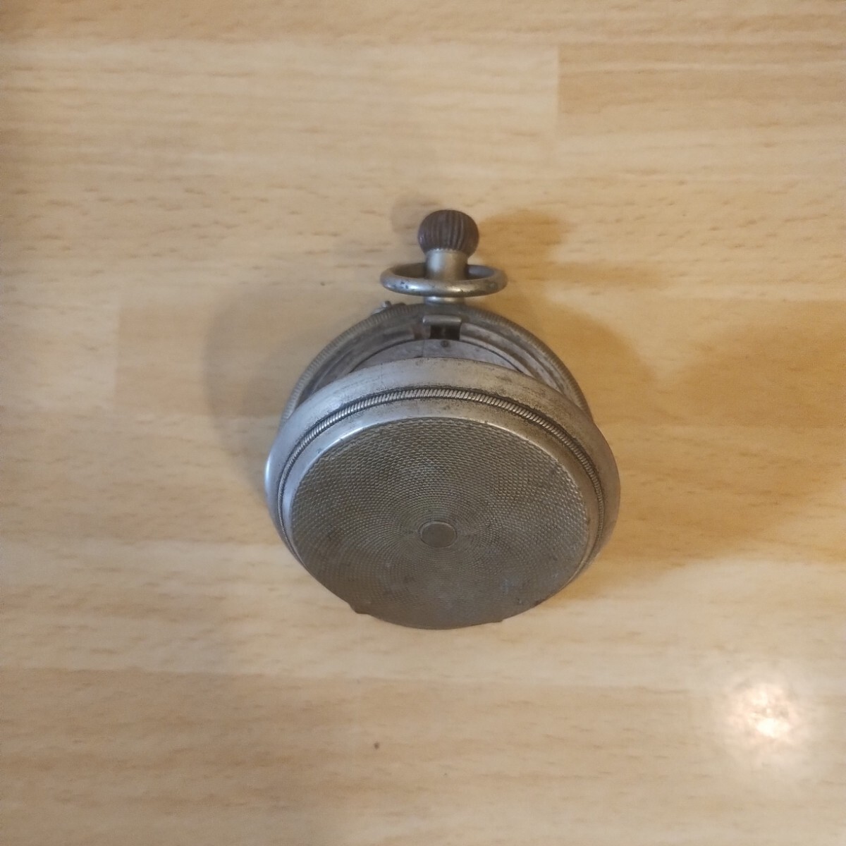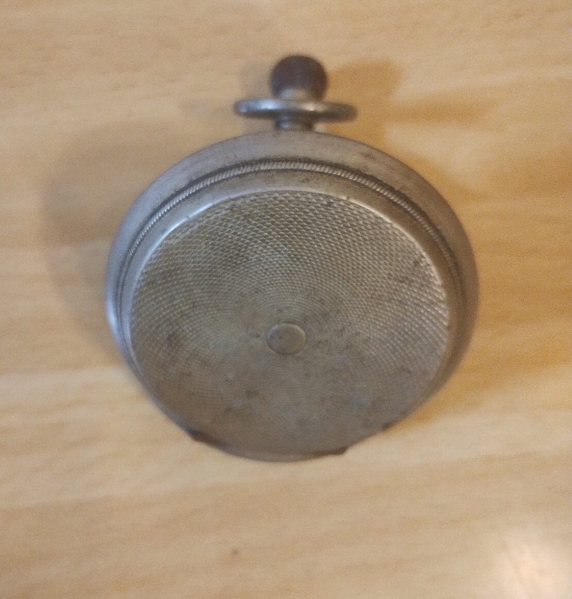 ホワイト文字盤とゴールド針の懐中時計、テクスチャー仕上げの裏面