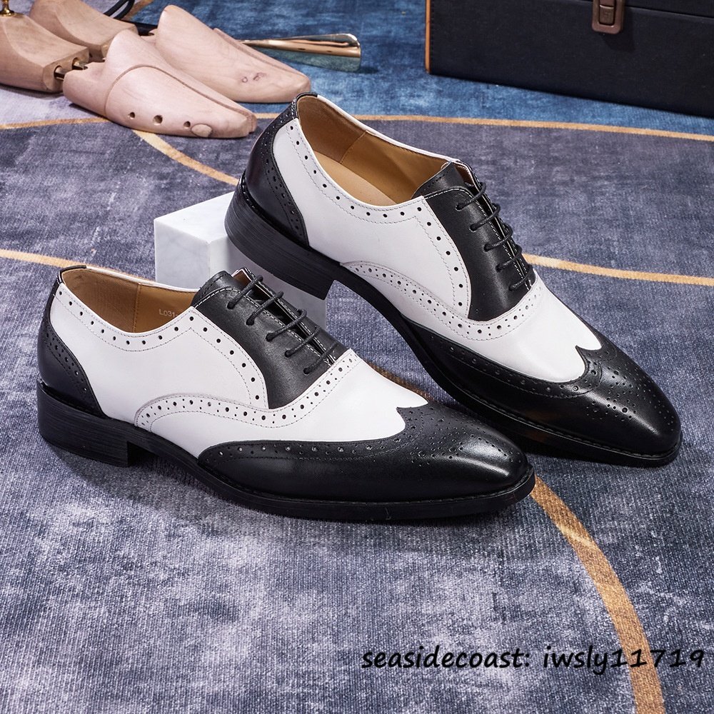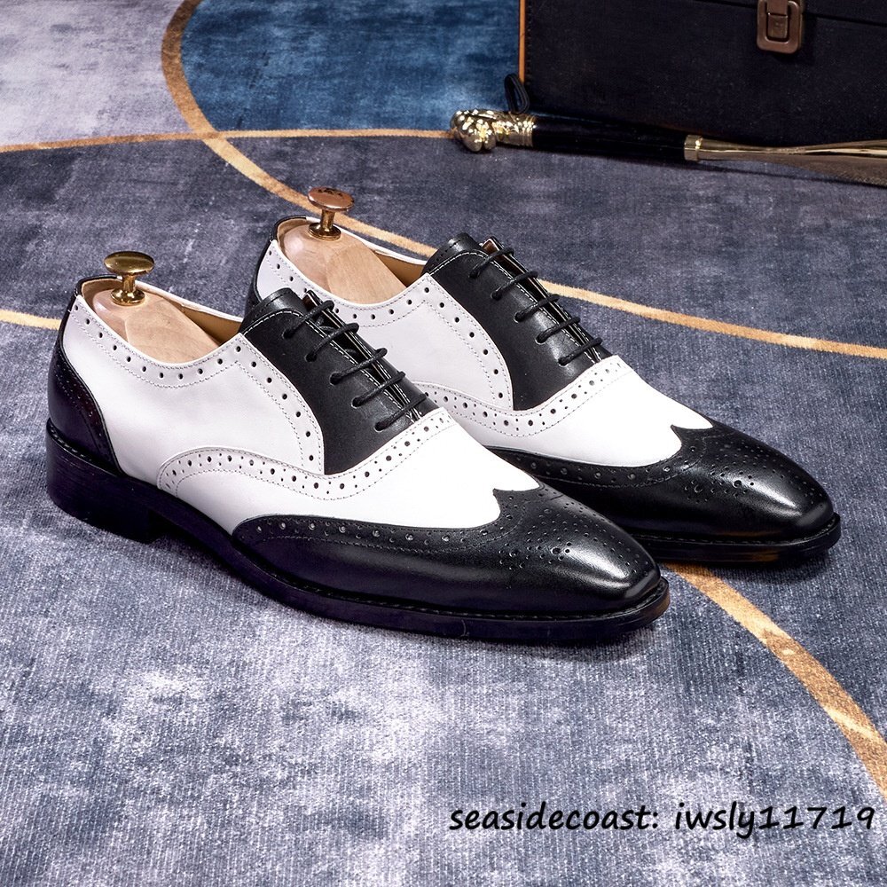 超希少◆メンズ ビジネスシューズ 本革 レザーシューズ ウィングチップ 革靴 切替 通気 職人手作り 冠婚葬祭 高級牛革 ブラック 26.0cm