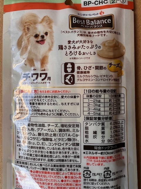 | * 商品説明 * ◆市価1袋280円の商品×30袋 合計8400円相当のセット チワワ、パピヨン、ポメラニアン等、特に骨や関節の健康維持に配慮したい犬種のために カルシウム、ビタミンD、グルコサミン、コンドロイチンを配合したペースト状のおやつ。 タイ産 15g4本入り×30袋セット 賞味期限2026.02月末 ※商品重量約2250g 未開封新品です。 在庫処分品とご理解の上ノークレームノーリターンでお願いします。 | ||||||||