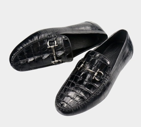 クロコダイルレザー ビジネスシューズ 最高級 ワニ革 クロコダイル 靴 メンズシューズ 革靴 ブラック 24.5cm 【n784】
