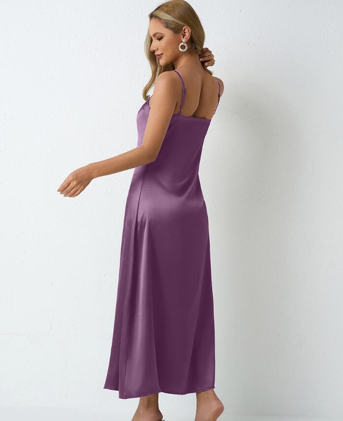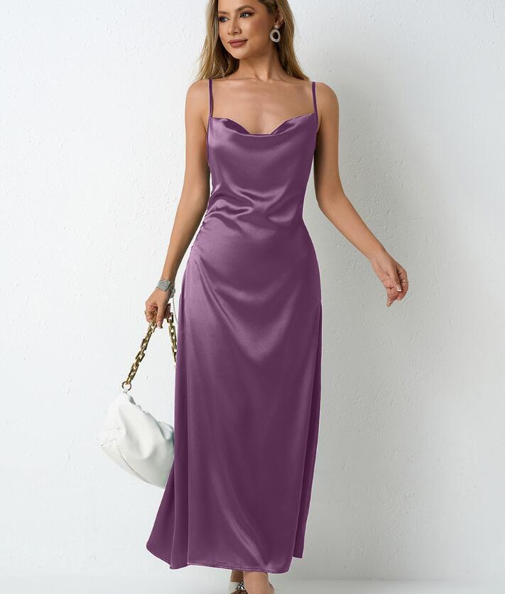 409 ワンピースladiesレディース ◇ 綺麗めシルエット ◇光沢  キャミワンピ   パープル