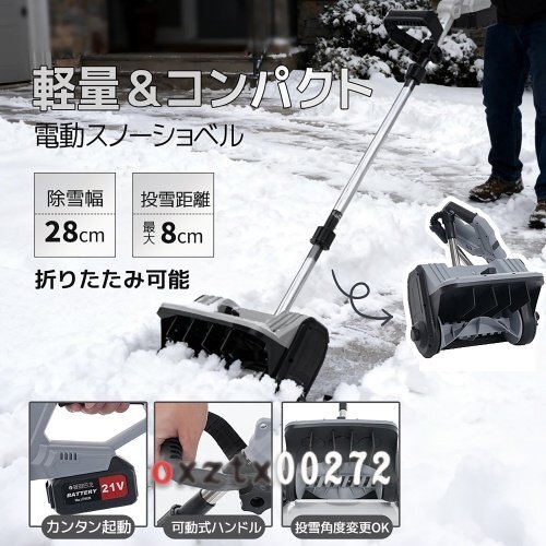 2025新作 除雪機 小型 充電式 折りたたみ 超軽量 家庭用 除雪幅28cm 除雪高8cm グレー 大容量バッテリー 方向調整可能