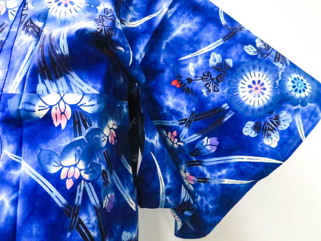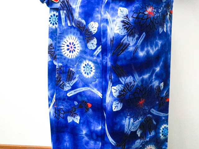 リサイクル商品のため、衿(首裏あたり)にシミ汚れがございますが着用可能なお品です。 地色は青です。 1枚目の画像が近いお色かと思われます。 素材は綿です。 |