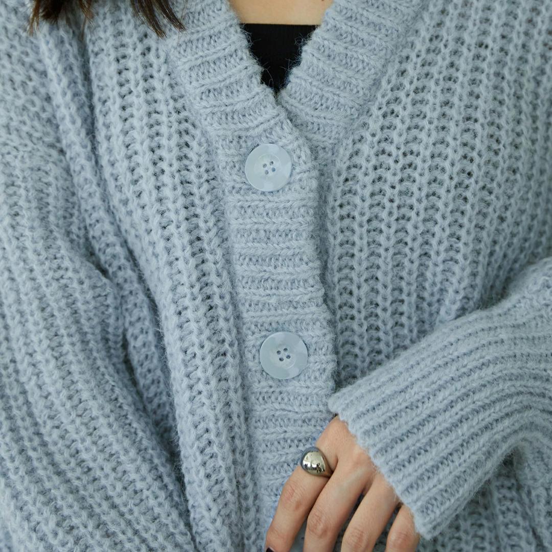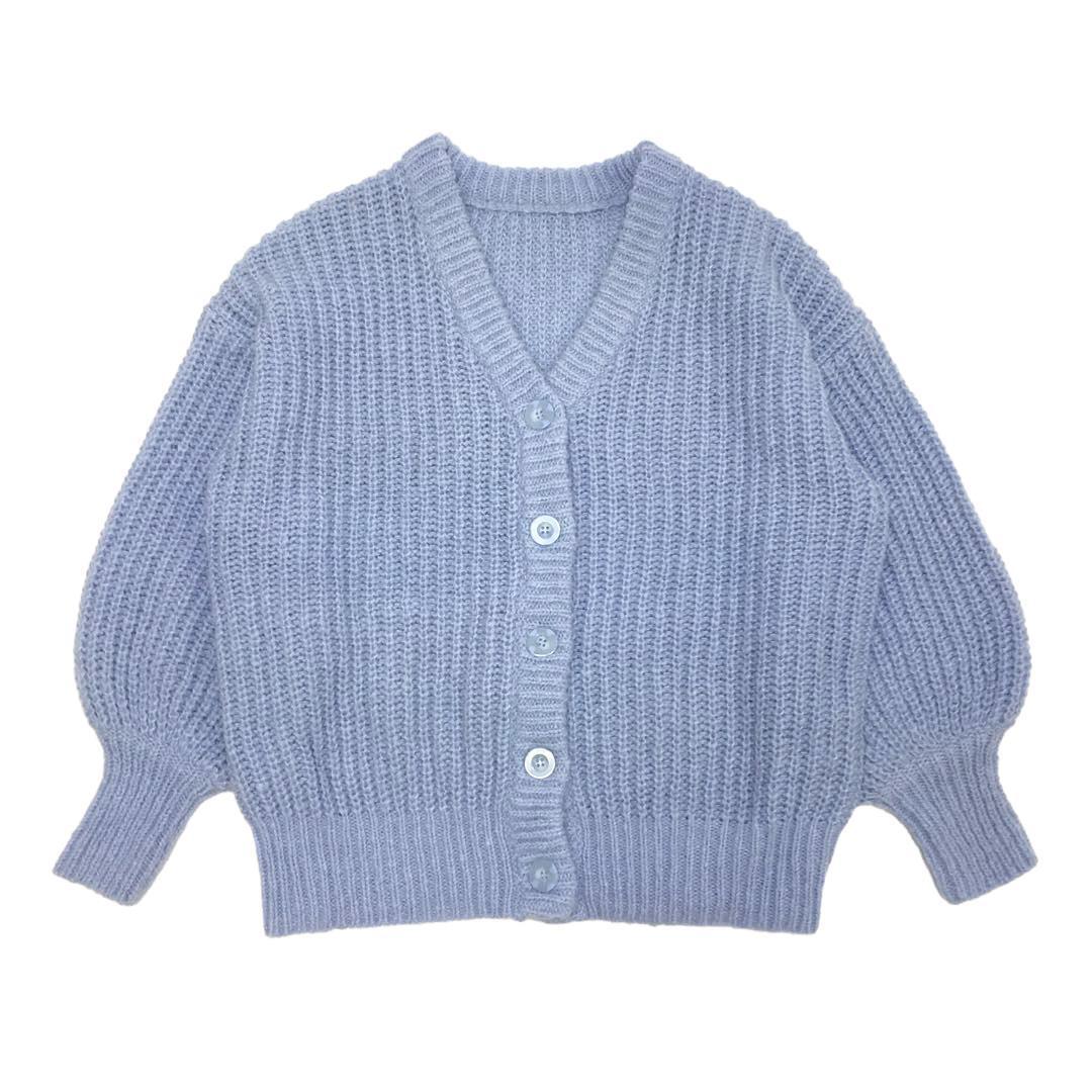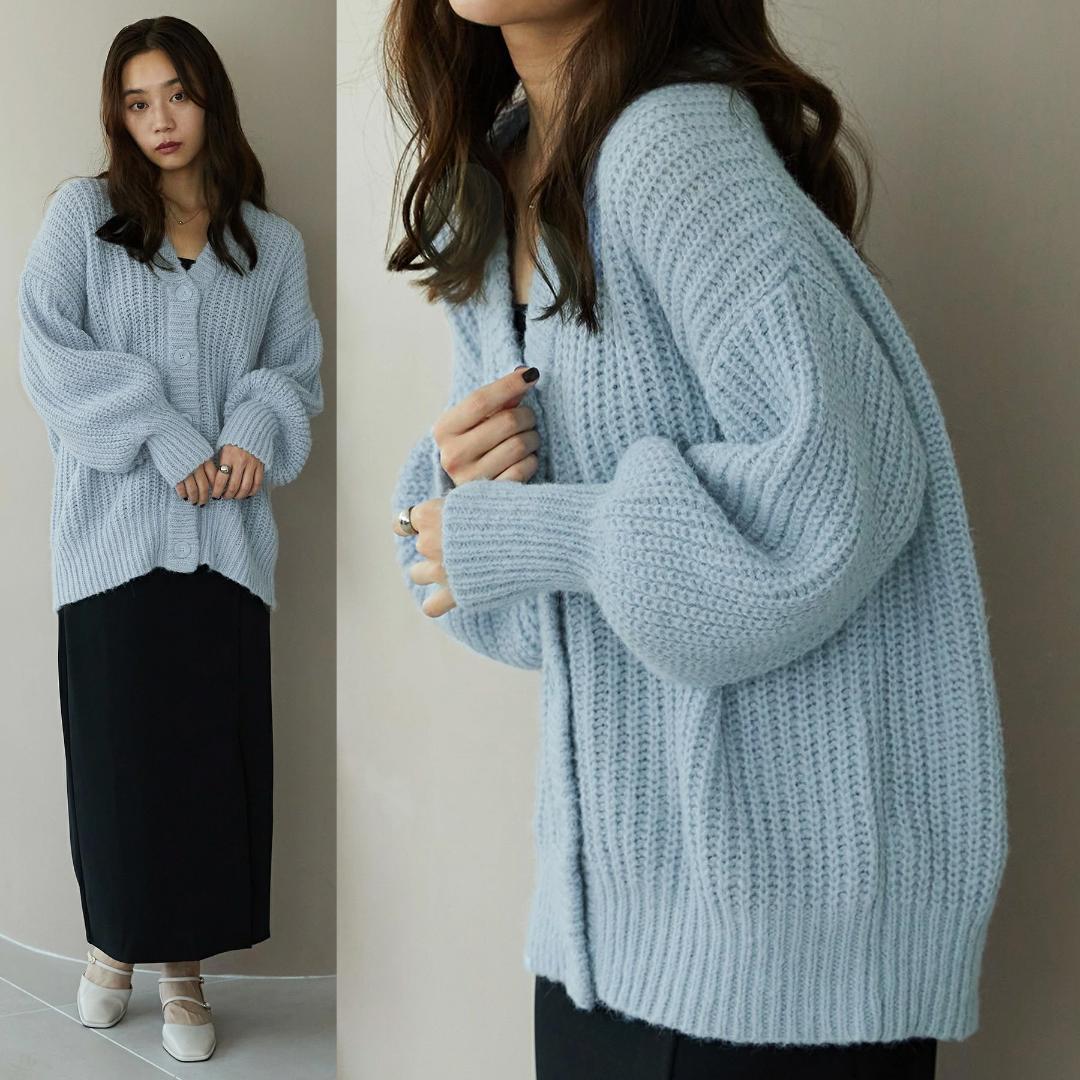 抜け感のある襟元の開きで鎖骨周りが華奢に見えるVネックカーディガン。