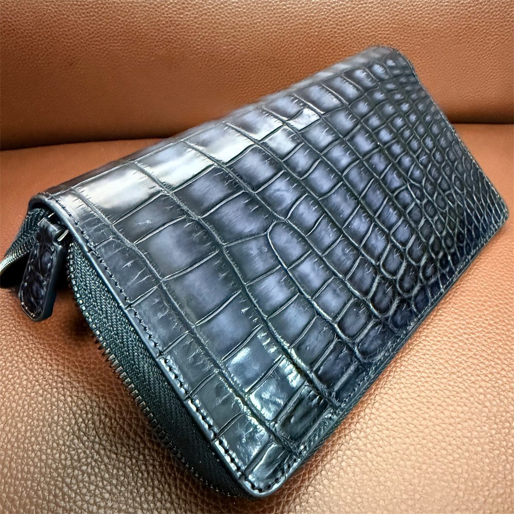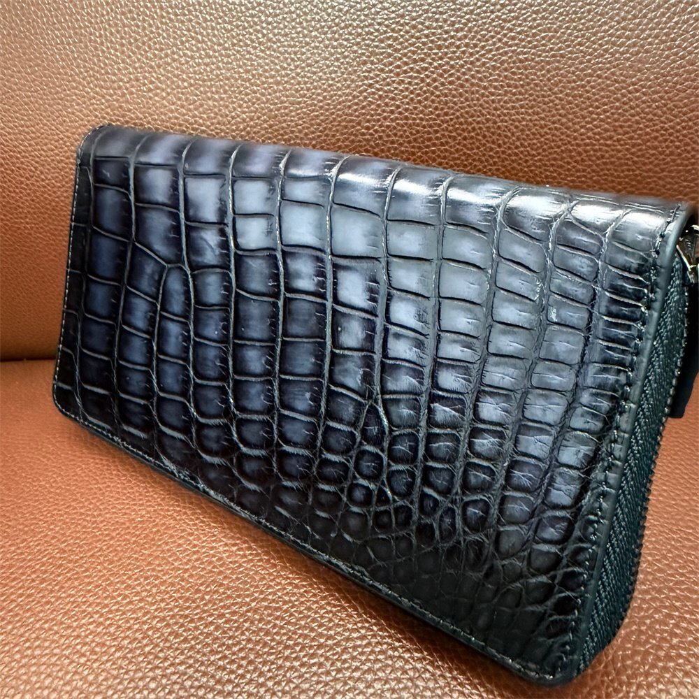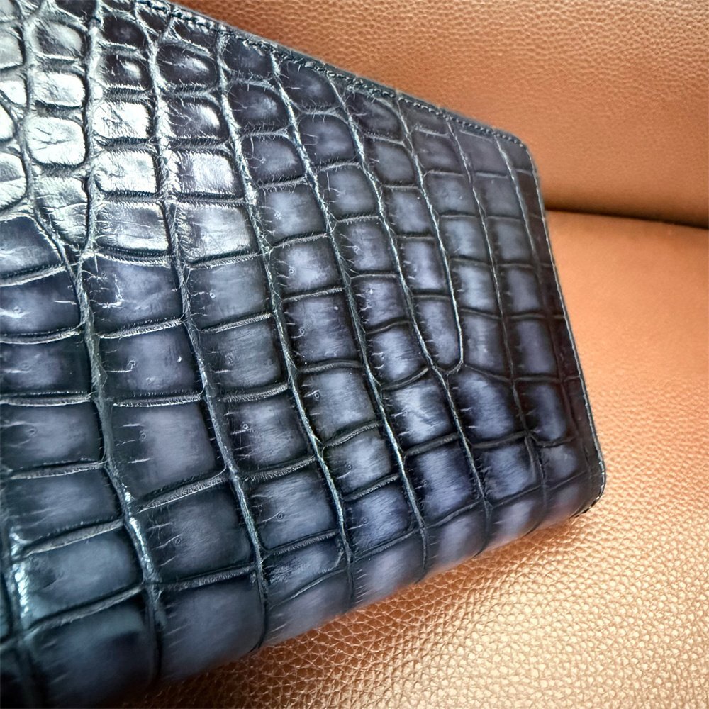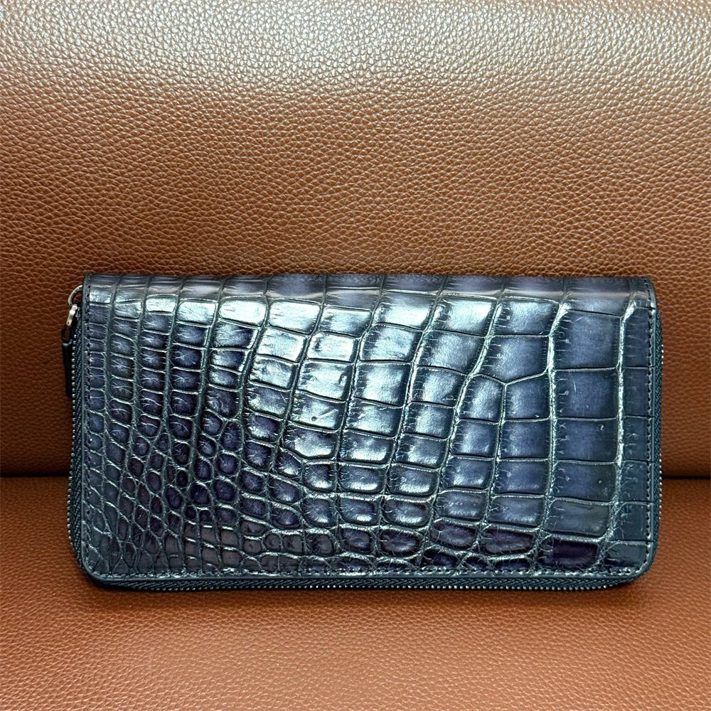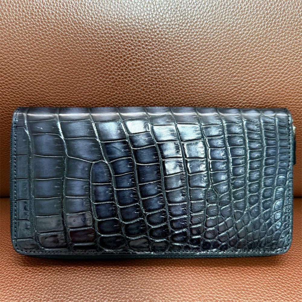 上級限定EU製&定価68万◆UABONI*アリゲーター・ファスナー長財布◆上品 希少 手染 パティーヌ クロコ 本革 レザー 紳士 通勤 ベルルッティ