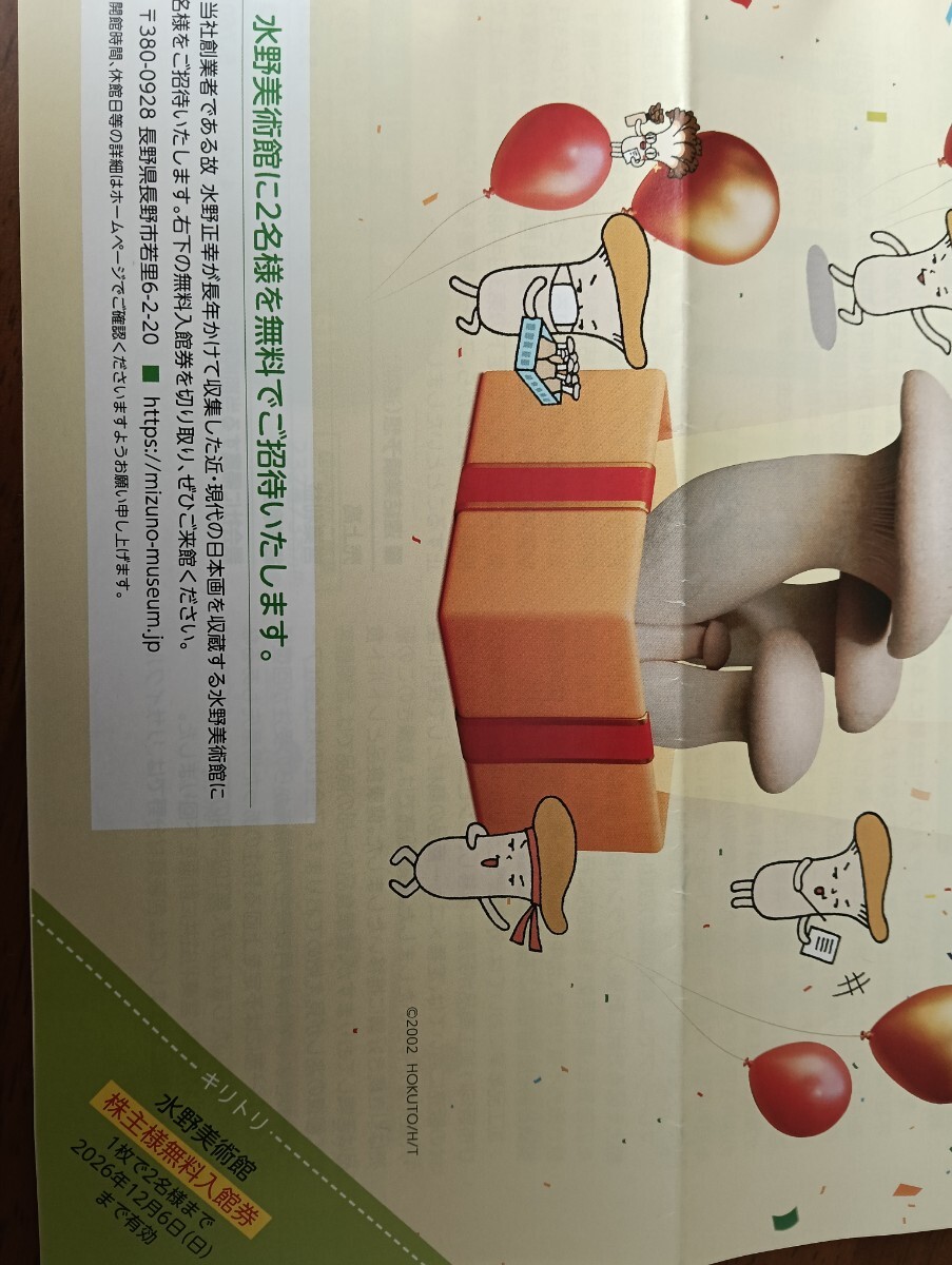 水野美術館 株主ご招待券 2名無料 有効期限 2026年12月6日