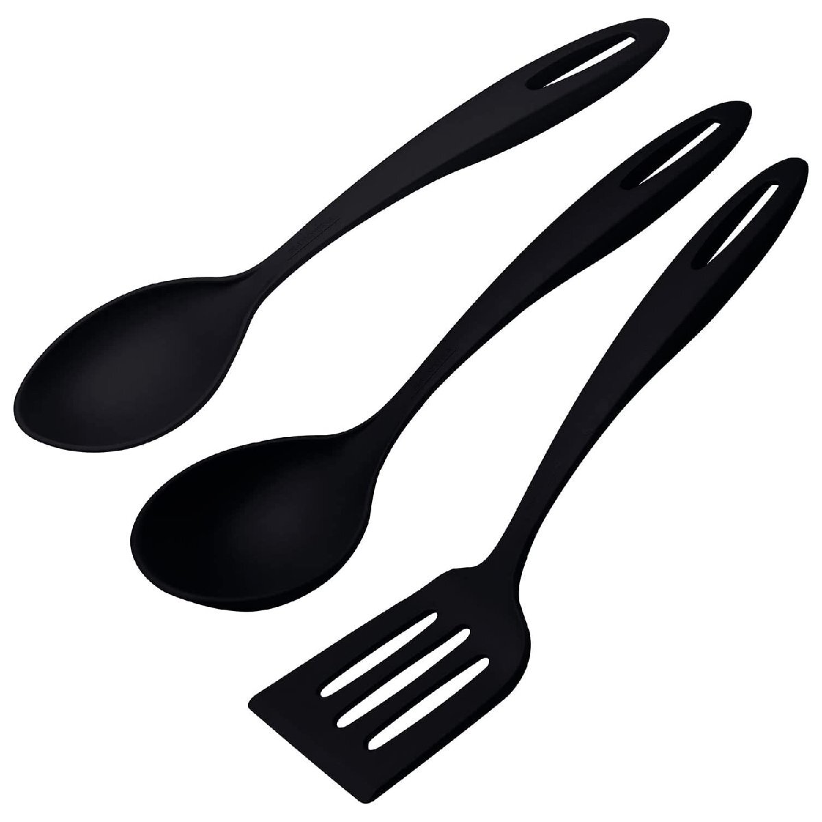 サービングスプーン、レードル、スパチュラのブラックカラー3点セット。