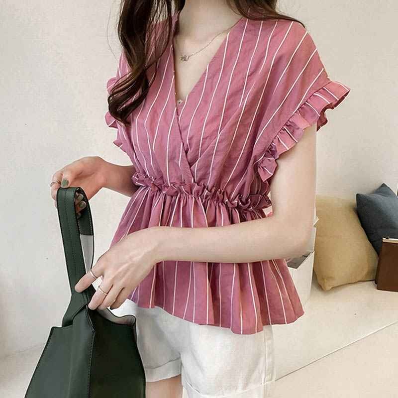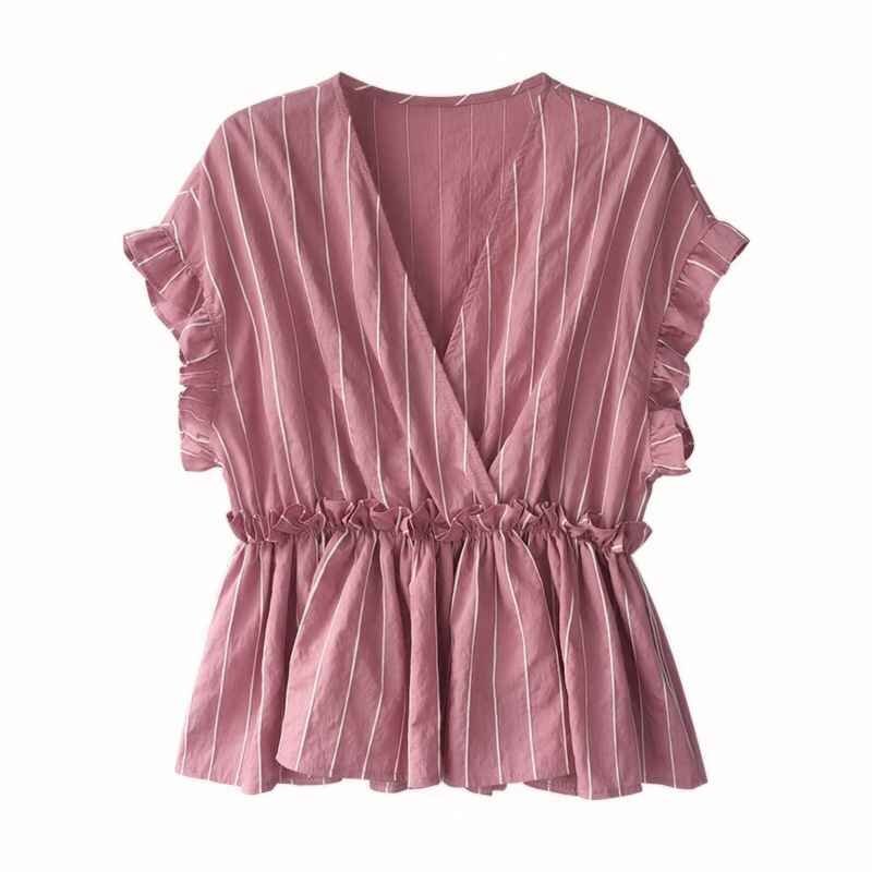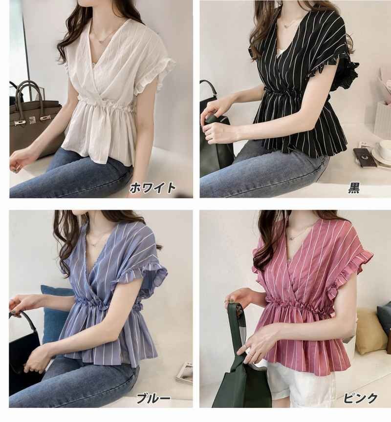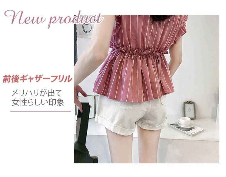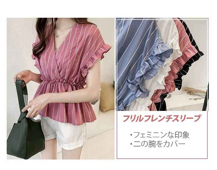 2.ドロップショルダーと袖のフリルがフェミニン