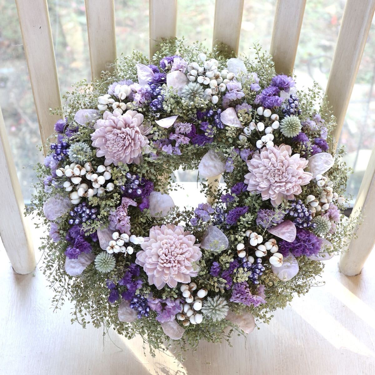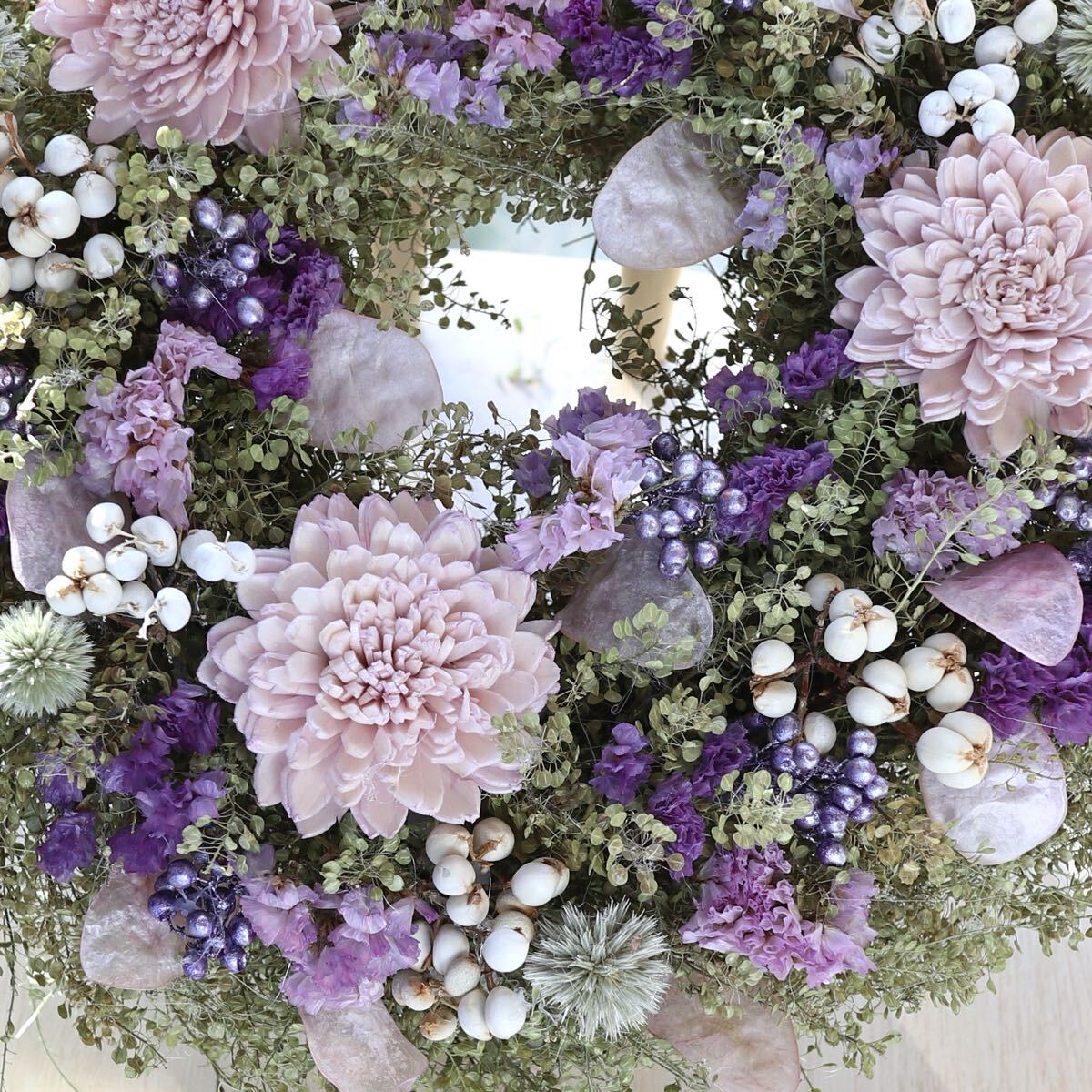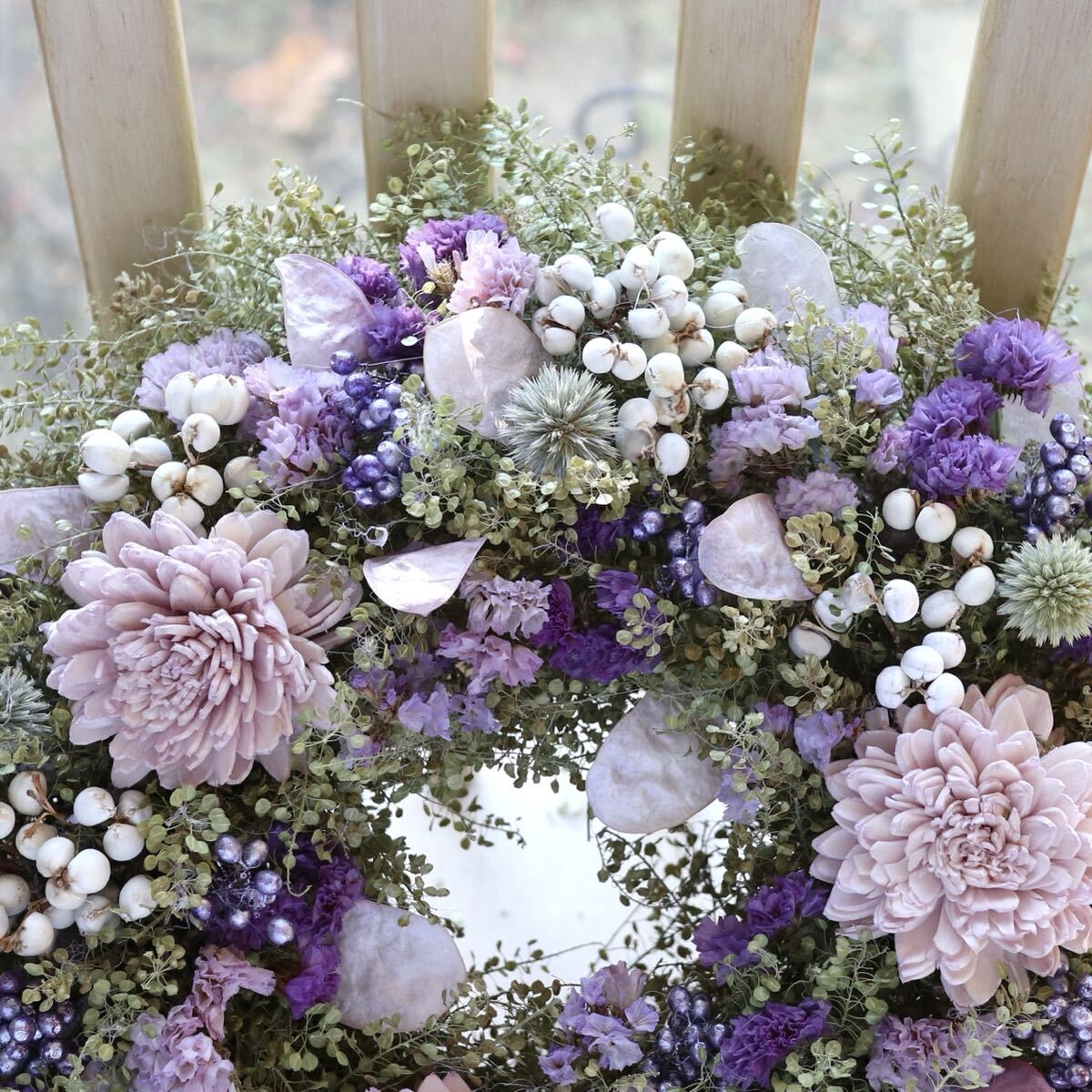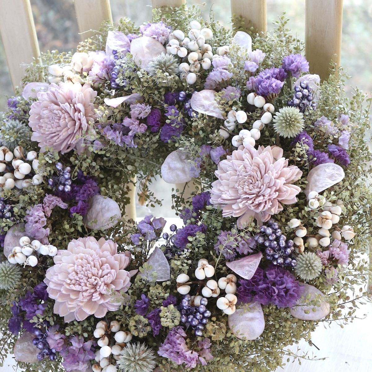 | ■ ■ 商品名: 「(30cm) *kashun*ハンドメイド ピンクパープルのお花畑リース/ドライフラワー/誕生日プレゼント/ウィンター/クリスマス/贈り物/開店祝い ■ ■ |