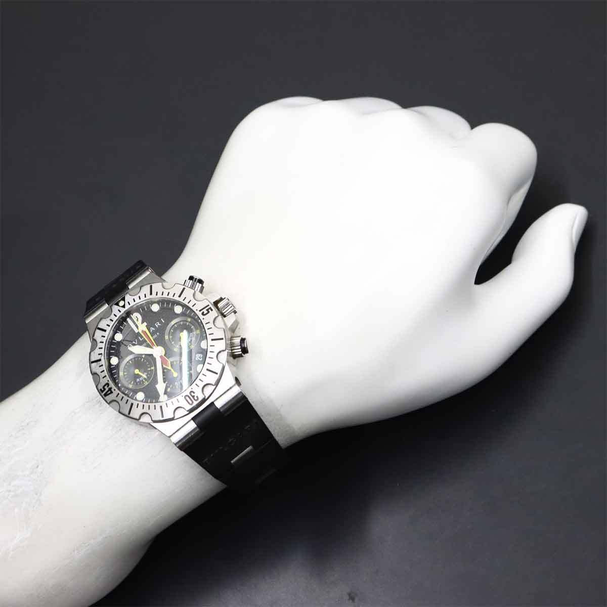 | 商品概要 | ブルガリからフライバック機能を搭載した『ディアゴノスクーバフライバック クロノグラフ』メンズ腕時計です。 存在感溢れる重厚なデザインが魅力のダイバーズモデル!ビジネス、カジュアルのどちらにも使えるのがポイント、ずっしりとくる重量感や洗練されたデザインはブルガリならではの逸品です♪ |