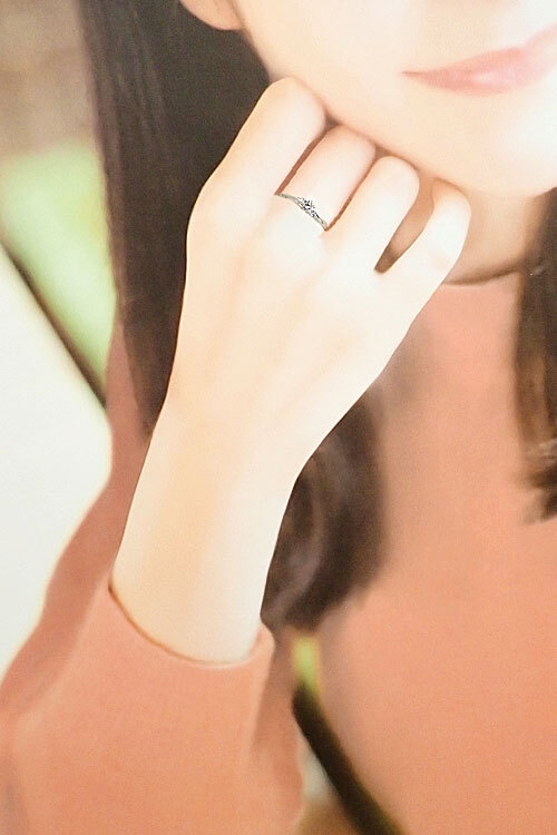 コメントタサキの、上質なダイヤモンドが放つ眩い輝きにおもわず見とれる、端麗なリングです。中央に向かって細くなめらかにウエーブしたアームが、軽やかな雰囲気をあたえてくれるお品です。