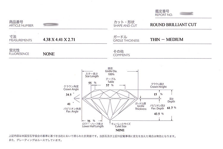 ダイヤモンドグレードダイヤモンドのグレードについてはこちら