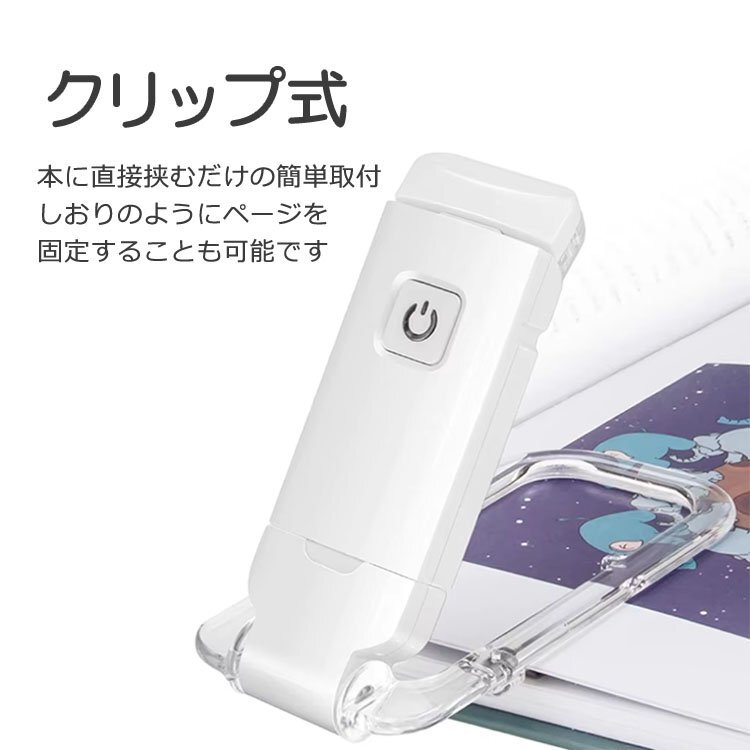 ◆クリップ式 読書灯 ブックライト USB充電式 クリップライト 角度調節可能 無段階調光 暖色 昼白色 読書ライト LEDライト デスクライト 小型 コードレス 持ち運び便利 CRBL360