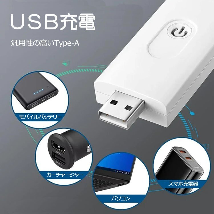 USB充電式で、キャップを外してそのままサッと充電することができます。
