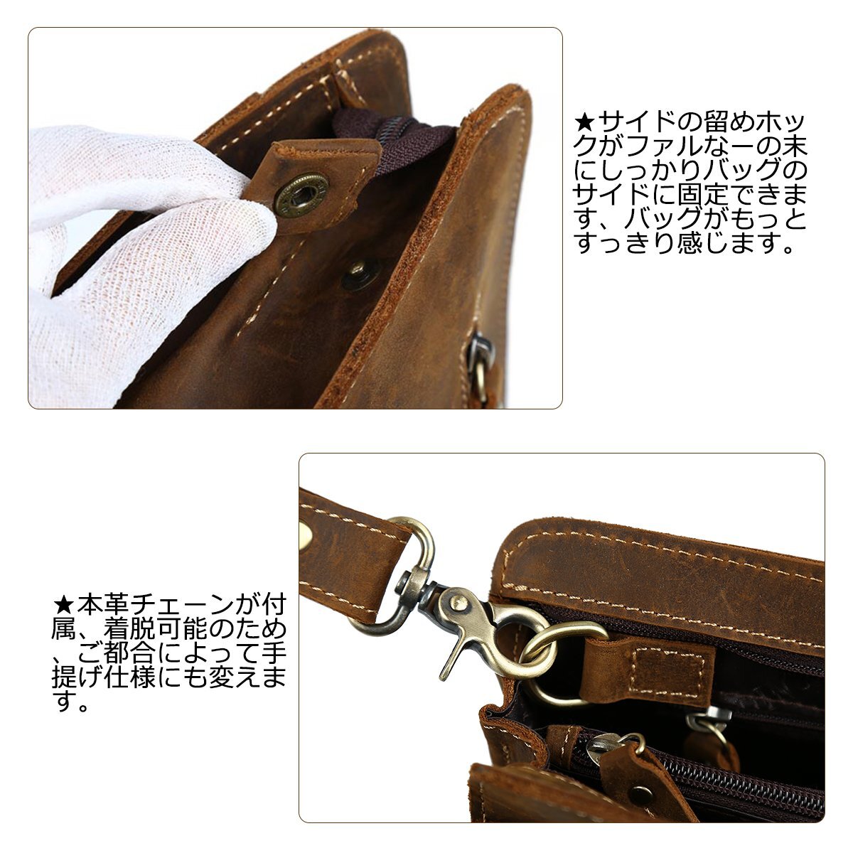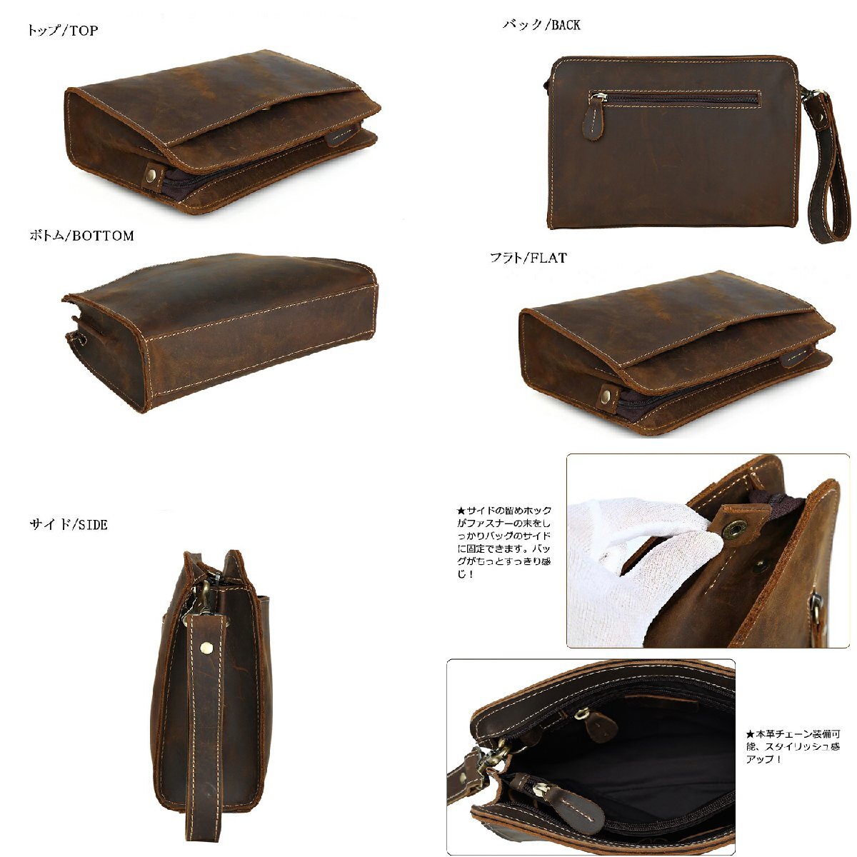 TIDING イタリア復古風 総革 メンズ セカンドバッグ 本革 一枚牛革 プルアップレザー 経年変化 ビンテージ 革チェーン付 ブラウン 潮牛