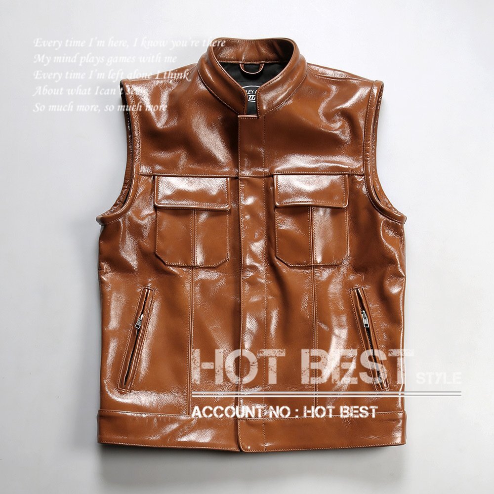 1.2mm カウハイド 本革 メンズ レザーベスト 皮ベスト ジレ 革ジャン 通勤 レザージャケット オイルレザー 牛革 Y2891/S~5XLサイズ指定可