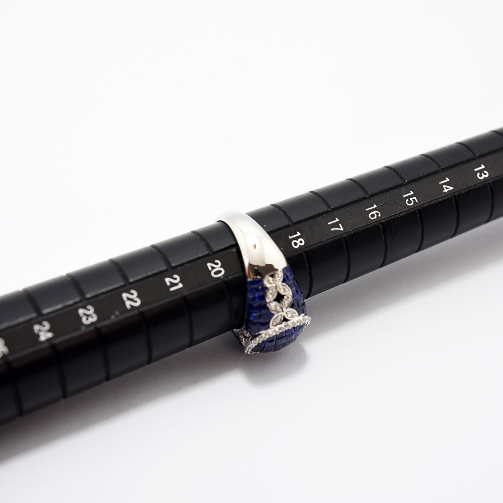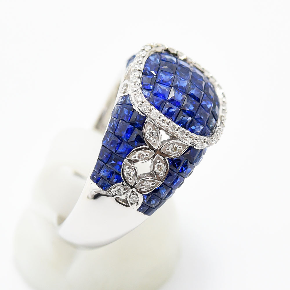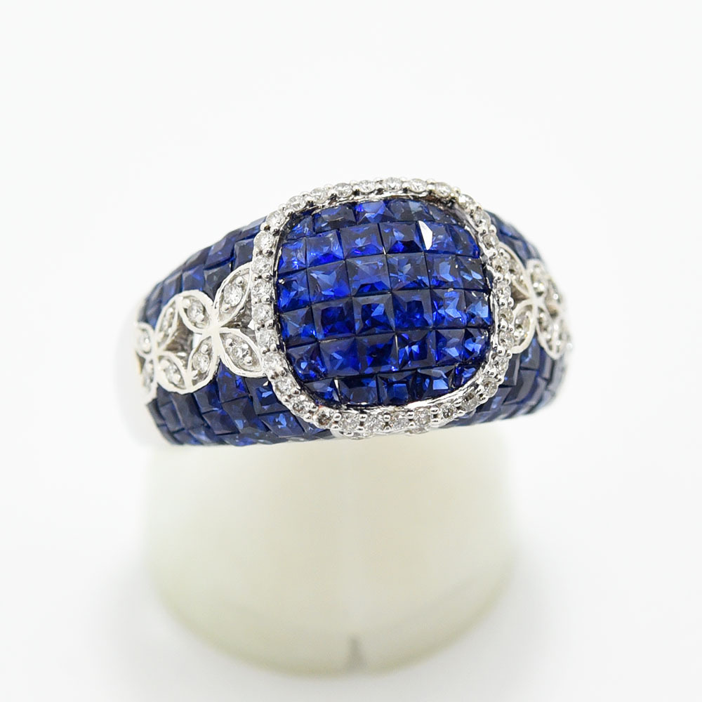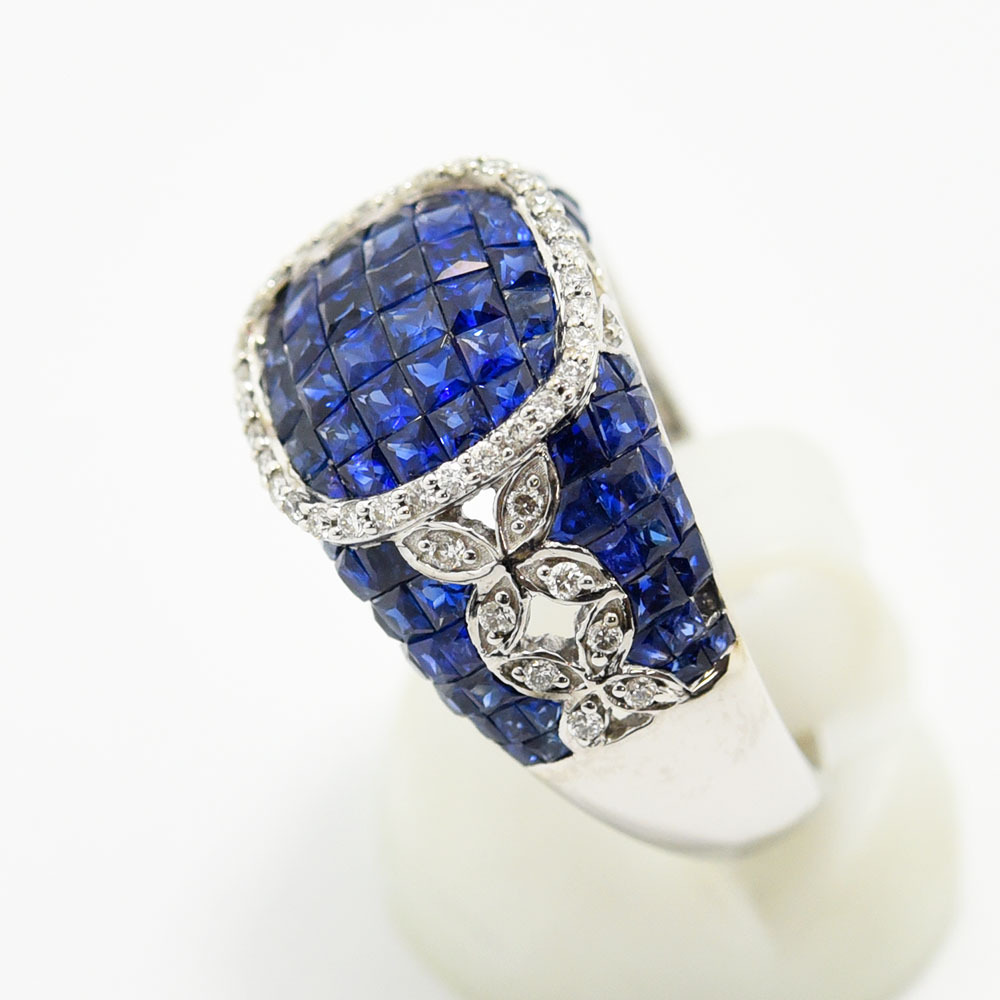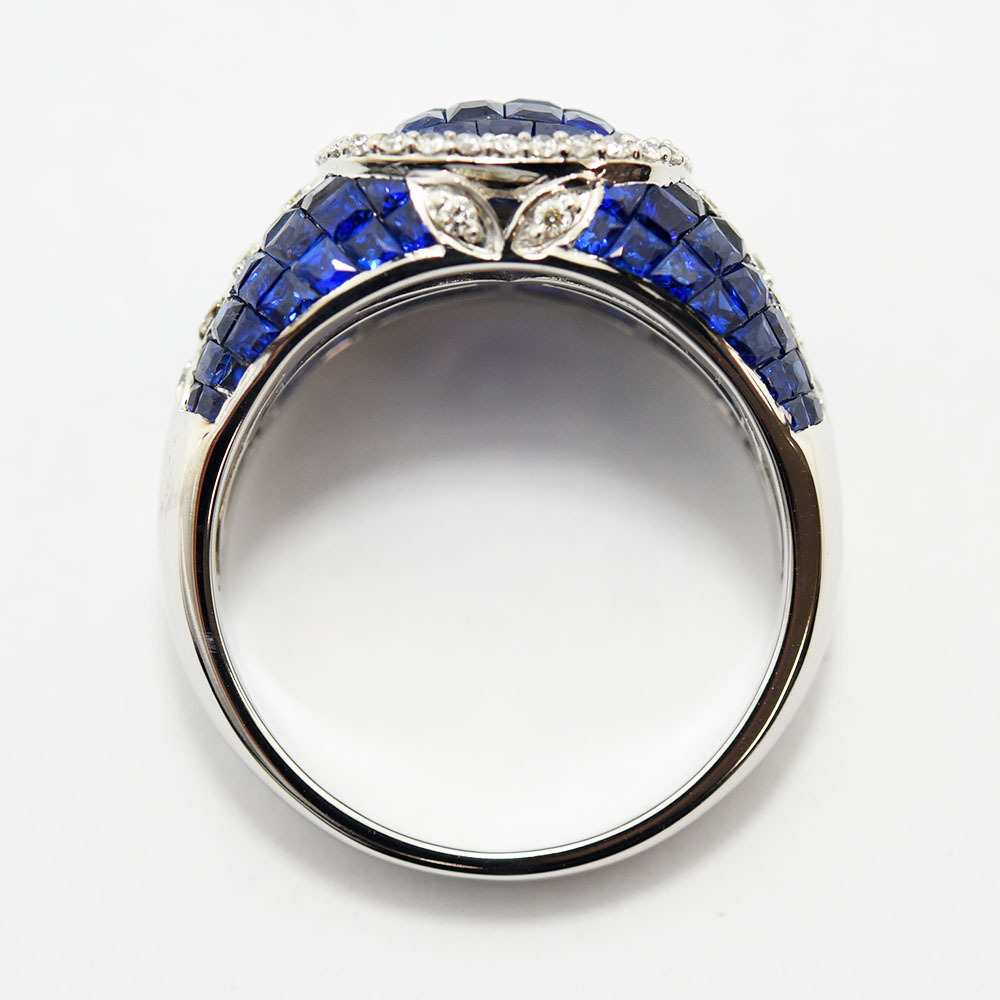 | サファイアとダイヤモンドが煌めく、ゴージャスなリングです。新品磨き仕上げ済みです。 |