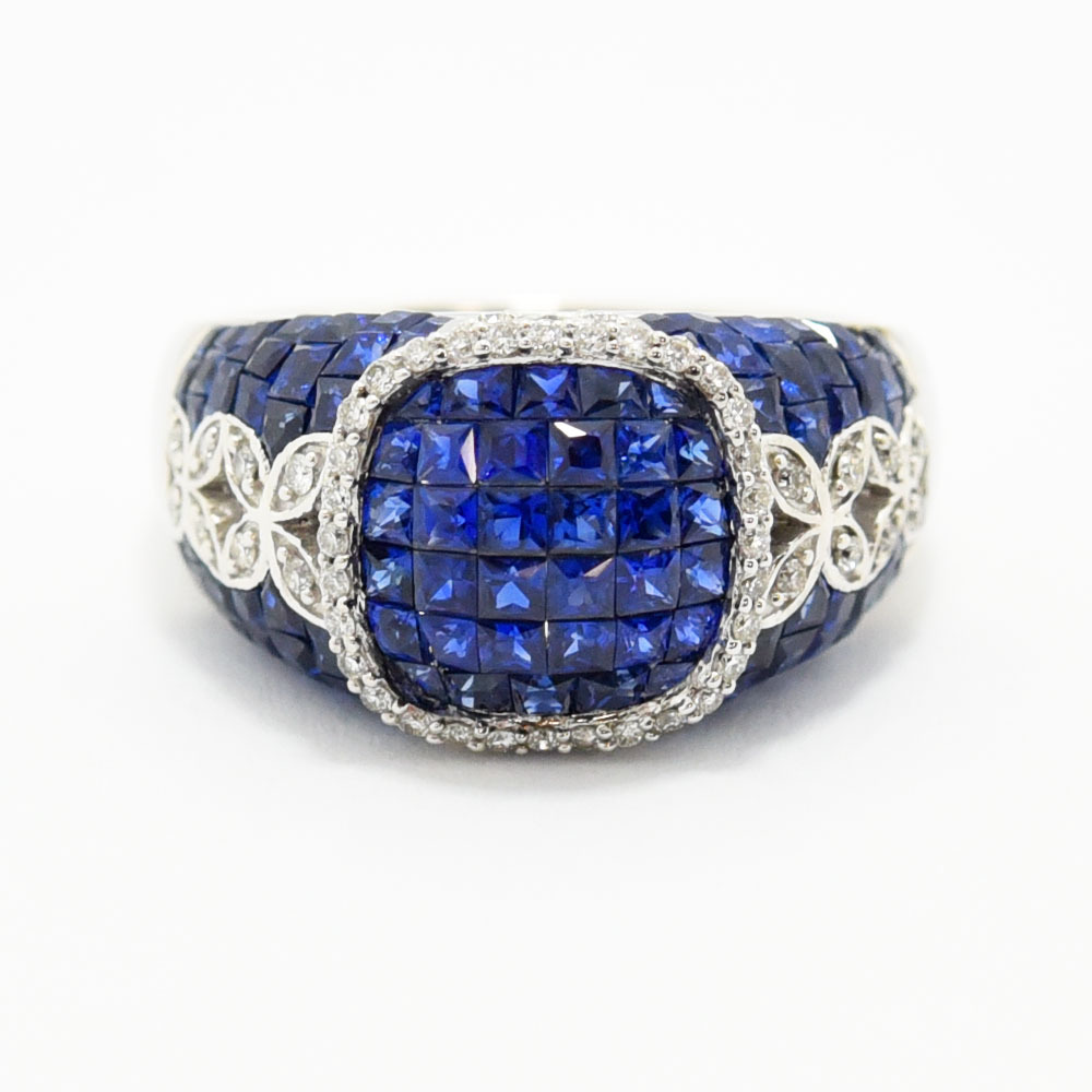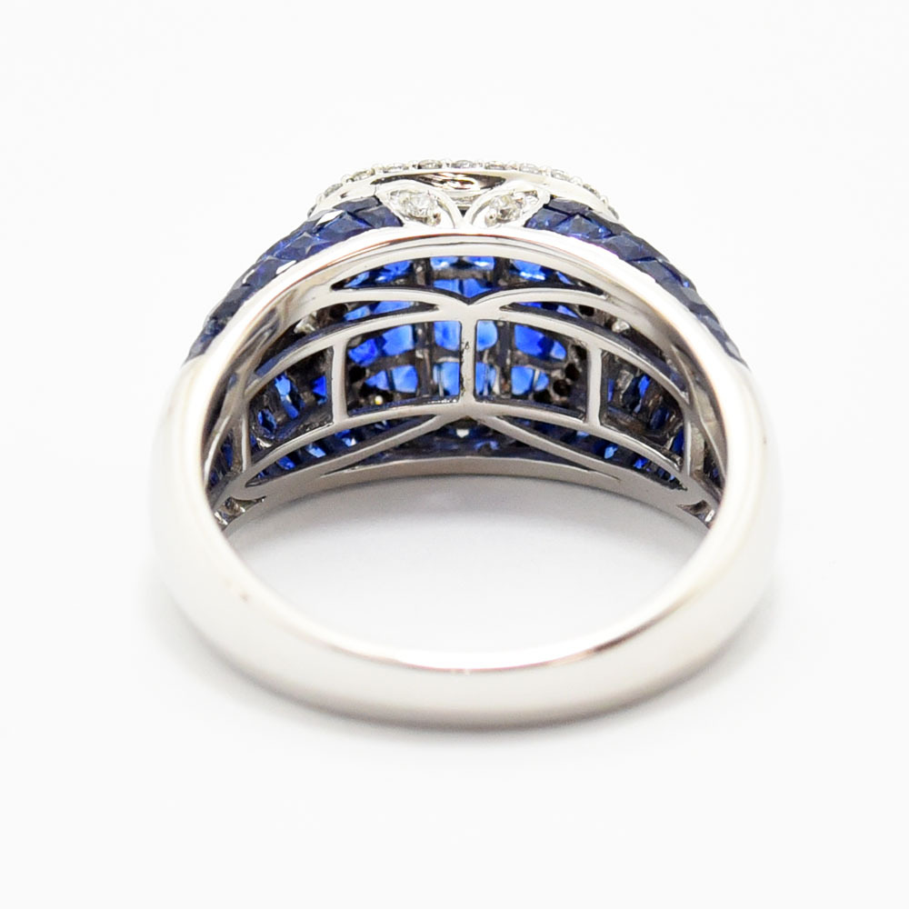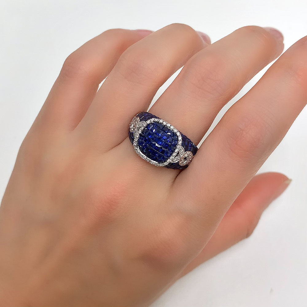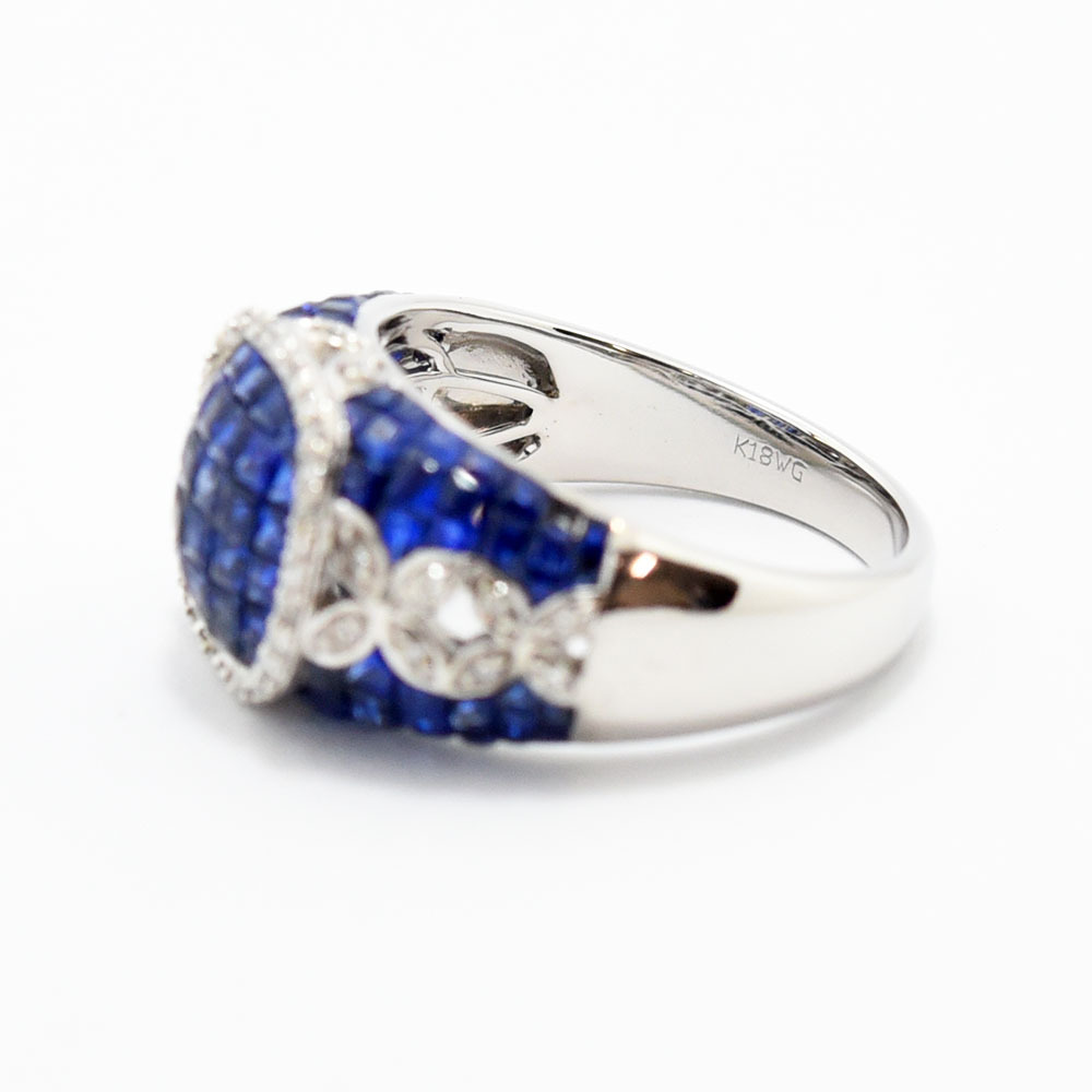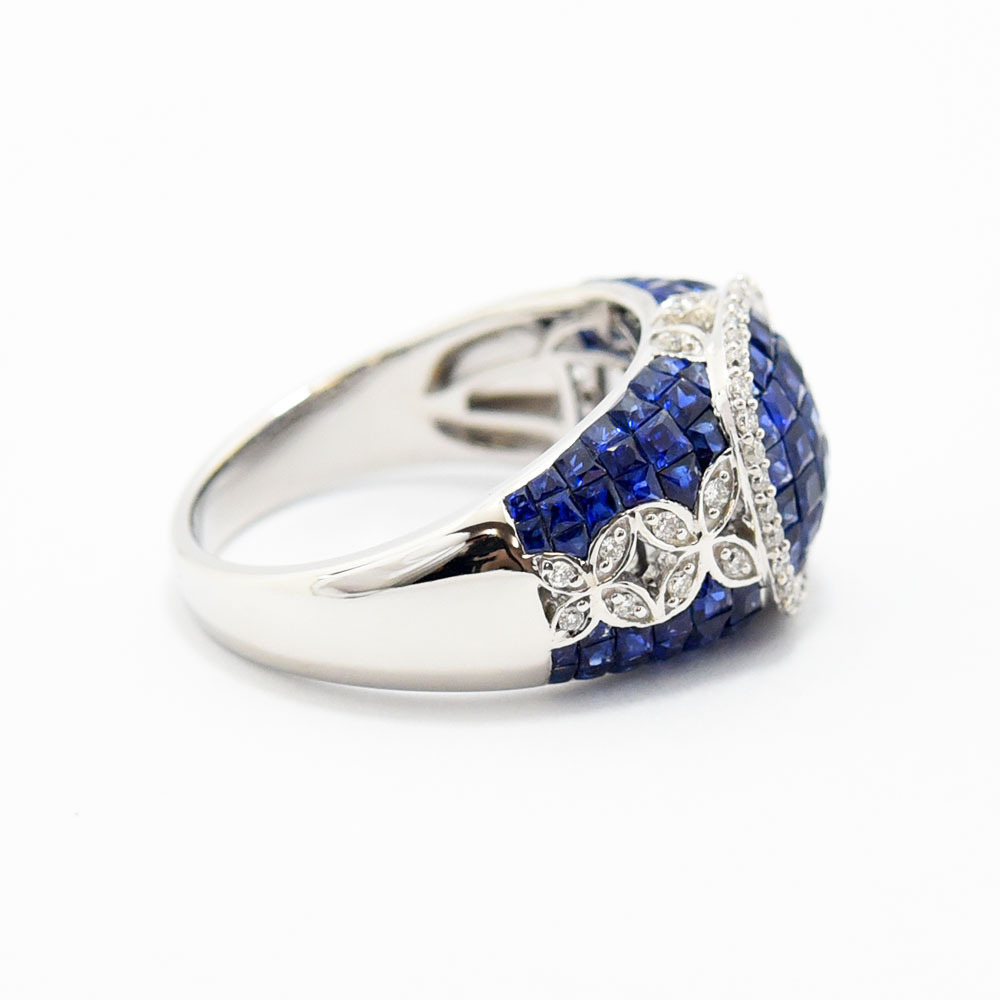 | サファイアとダイヤモンドが煌めく、ゴージャスなリングです。新品磨き仕上げ済みです。 |