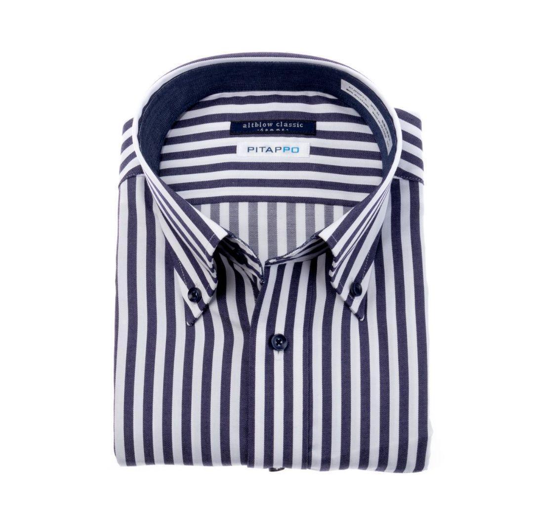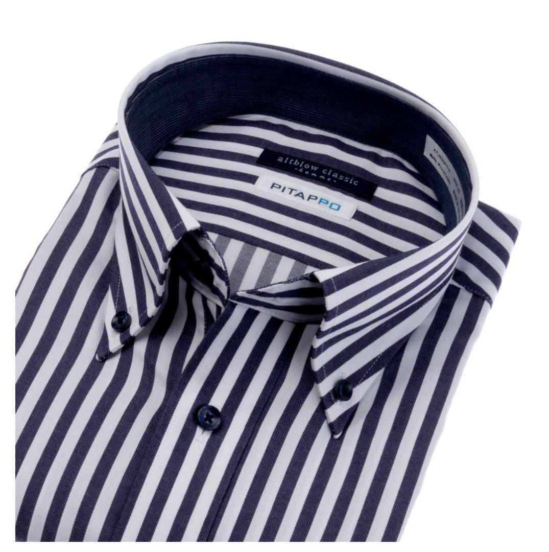 【新品 未開封品】五面体BODY ワイシャツ 形態安定 長袖 M ネイビーストライプ 送料無料