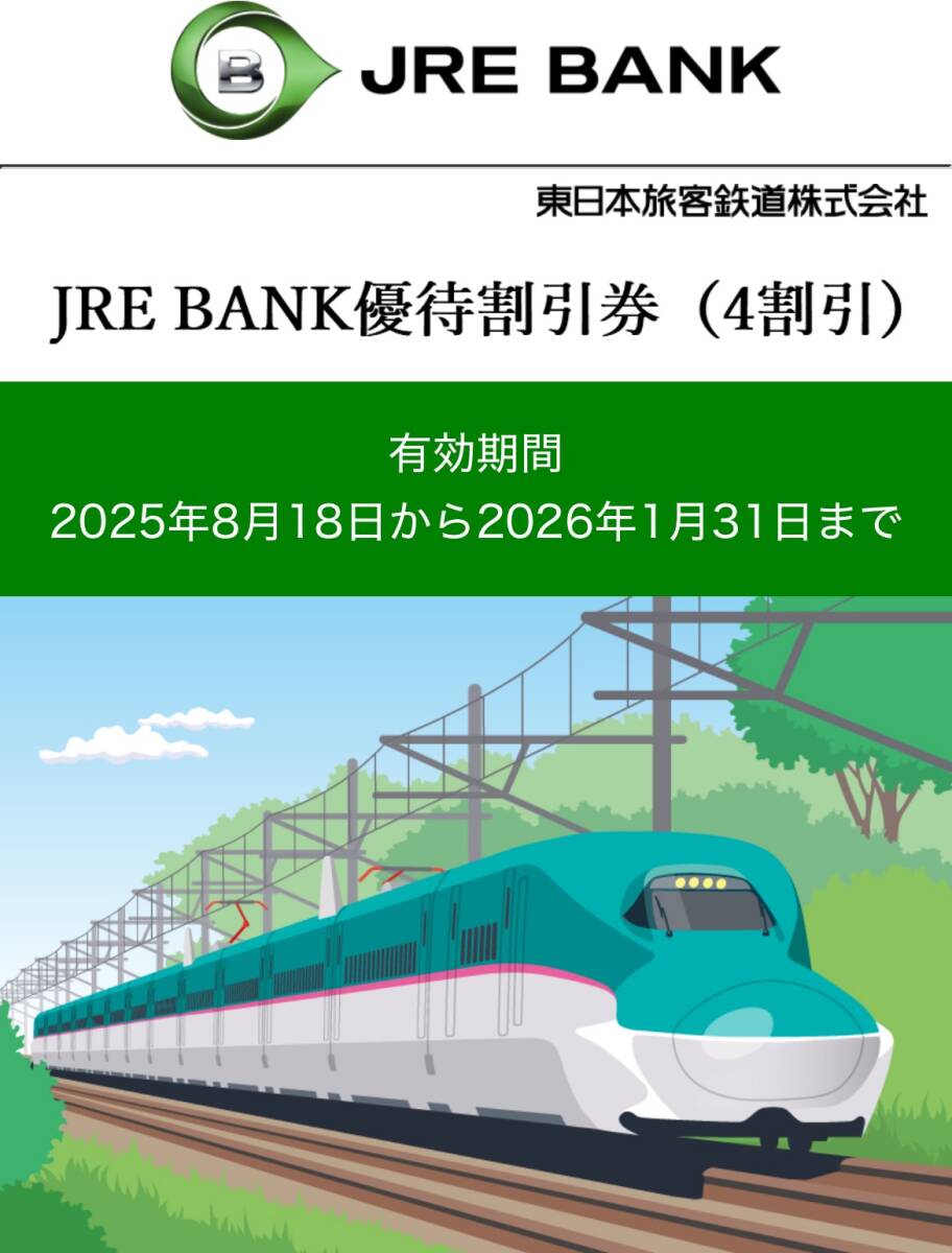 JR東日本営業路線で使えるJRE BANK優待割引券 (4割引) です。