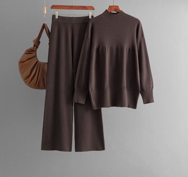 346 パンツスーツladiesレディース ◇ ニット素材 上質 ◇   厚手   秋冬   上下セット  コーヒー
