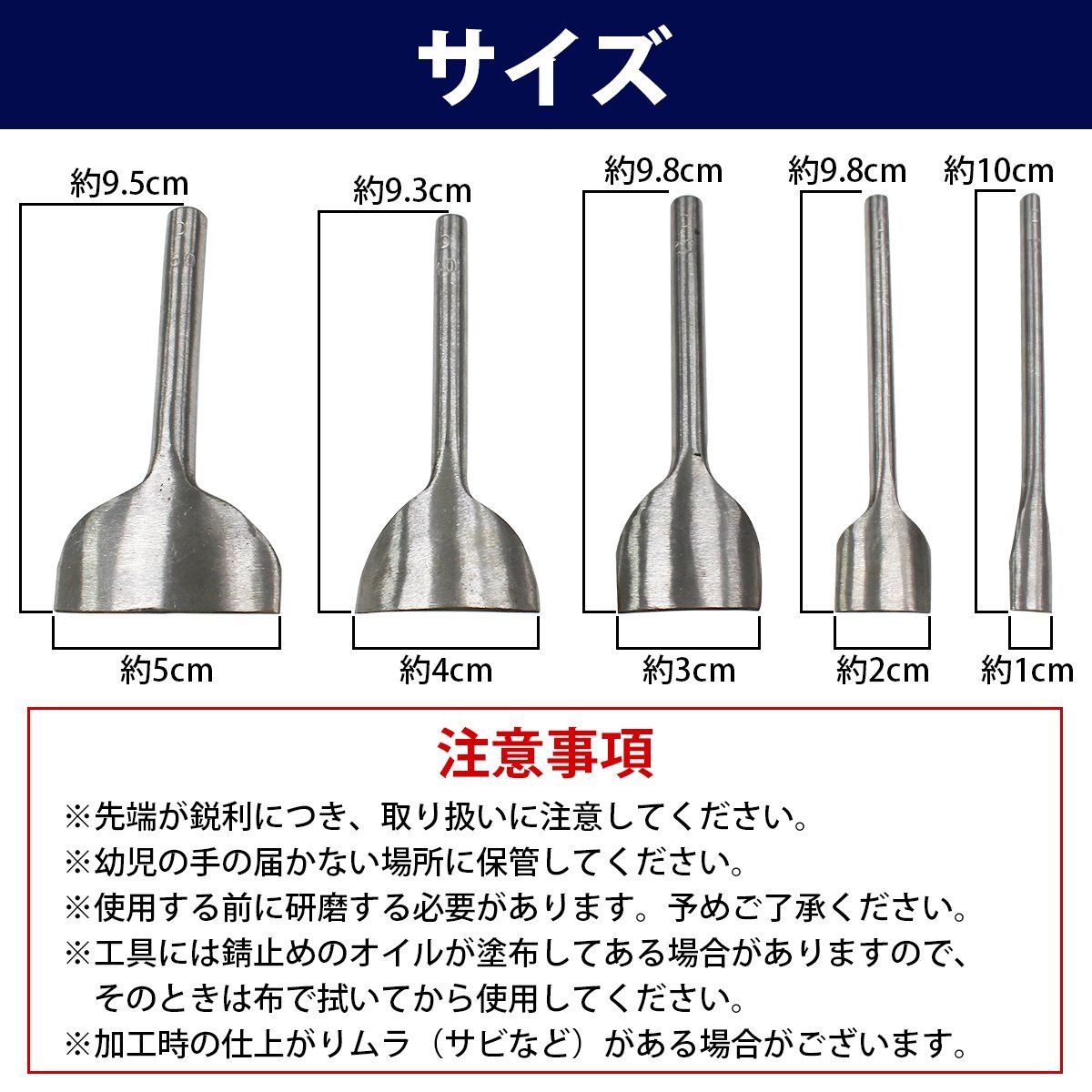 【新品即納】レザークラフト 工具 端落とし 半月型 浅円型 5点セット 革細工 鞄 靴 財布 レザー 小物 エンドポンチ へり 落とし ポンチ