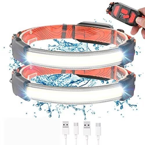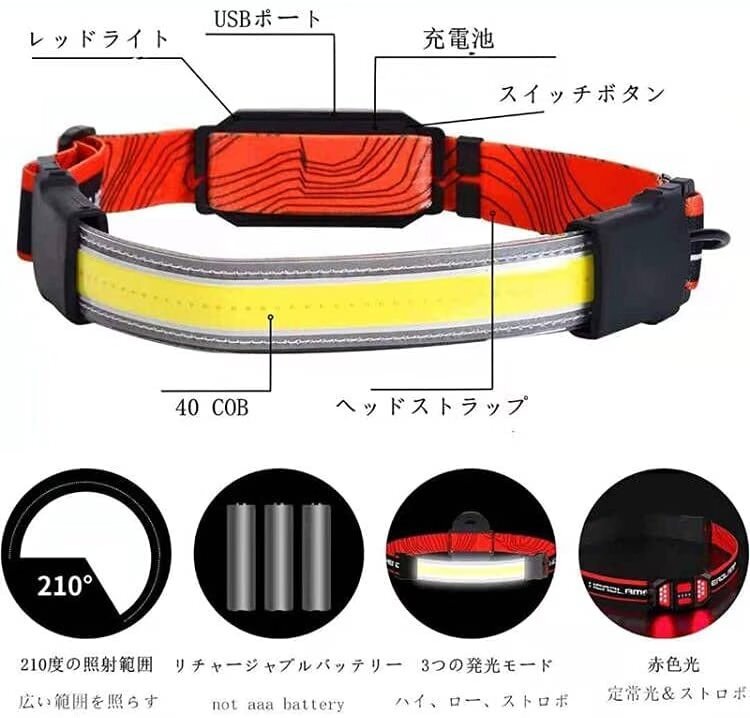 2個セット 広角照明式 ヘッドライト210広角 3種類点灯モード COBランプビーズ採用 USB充電 063