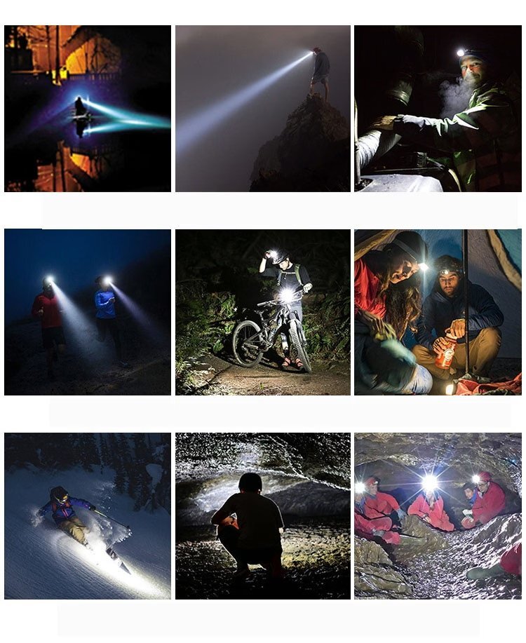 ★【210°広角照明】 従来型のヘッドランプとは違い、この製品は210度の広角度照明を提供、周囲にもしっかり照らす事が実現。しかも後ろに赤色ランプが付き、後ろの自転車や車に警告を与えられます。夜釣り、登山、キャンプ、ナイトラン等様々な場合に大活躍!