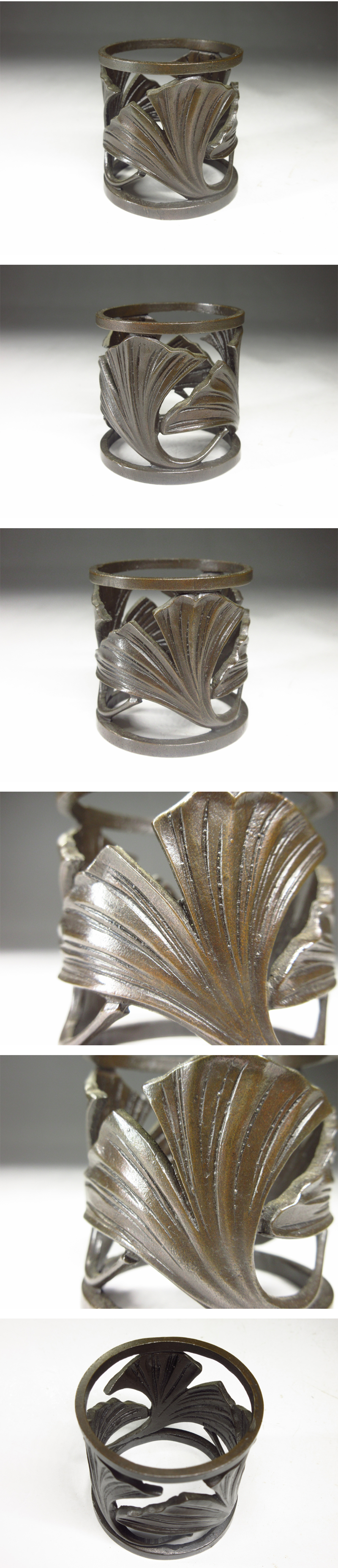 【漸】『中村大禾』造 鵬雲斎好 銀杏蓋置 共箱 茶道具 本物保証【HY2934】
