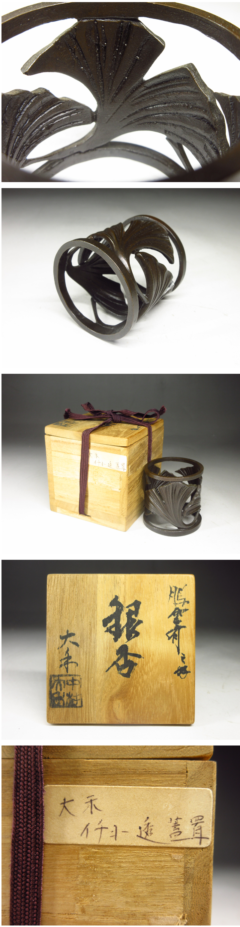 『中村大禾』造 鵬雲斎好 銀杏蓋置 共箱 茶道具 本物保証