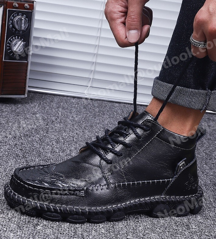 牛革 メンズ シュートブーツ ブラック サイズ 27.5cm 革靴 靴 カジュアル 屈曲性 通勤 軽量 インポート品【n021】