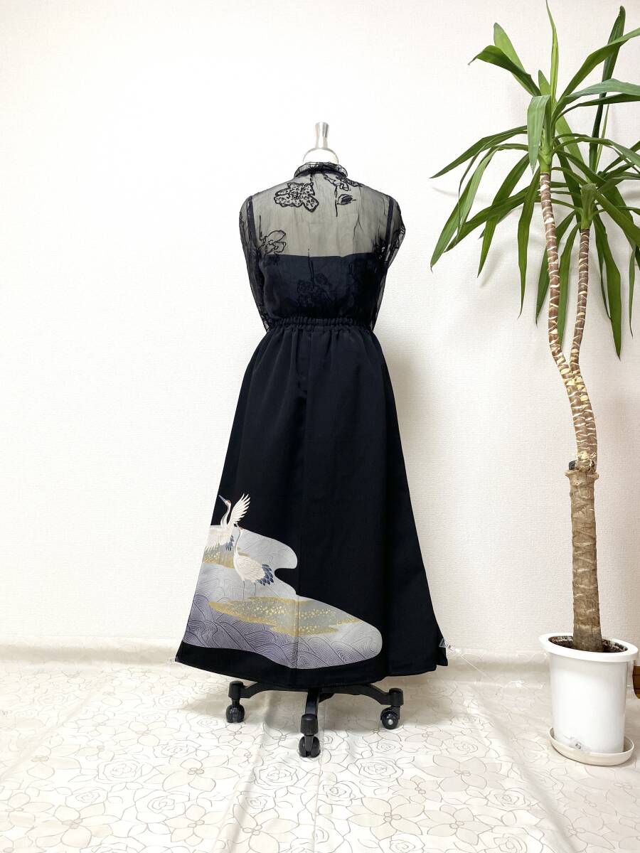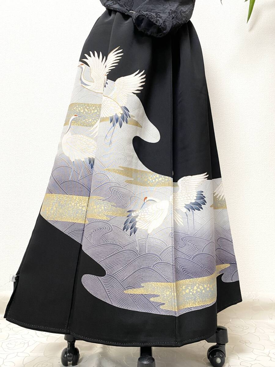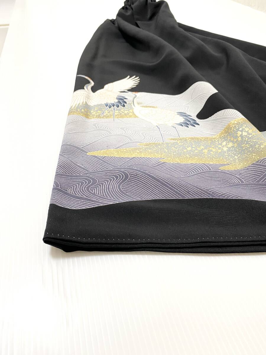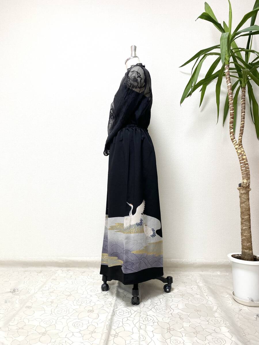 大人可愛いセレブ着物スカートフリーサイズ黒留袖着物リメイクウエストゴムロングスカート