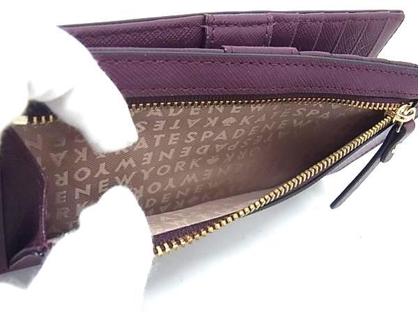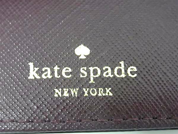 ■美品■ kate spade ケイトスペード WLRU2673 レザー 二つ折り 財布 ウォレット 小銭入れ レディース ワインレッド系 DK8642