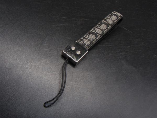 ■極美品■ COACH コーチ シグネチャー キャンバス×レザー ストラップ キーホルダー バッグチャーム ブラック系×シルバー系 DJ2220