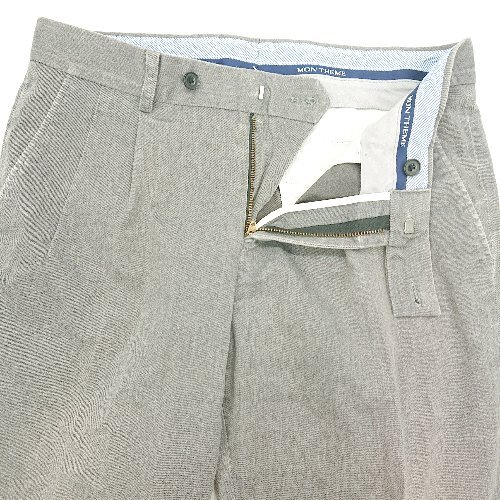 ◇ mon theme モンテーム 微ストレッチ センタープレス タック テーパード パンツ サイズ46 グレー系 メンズ E