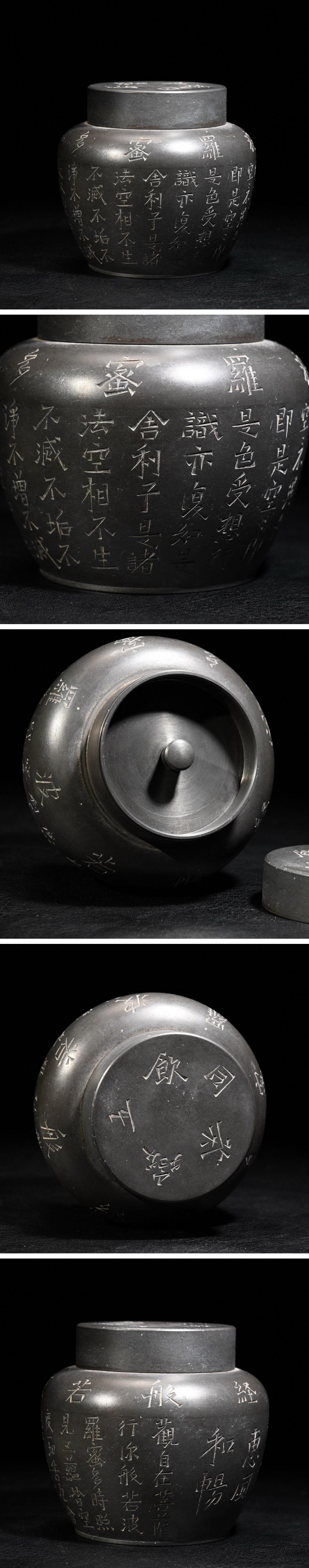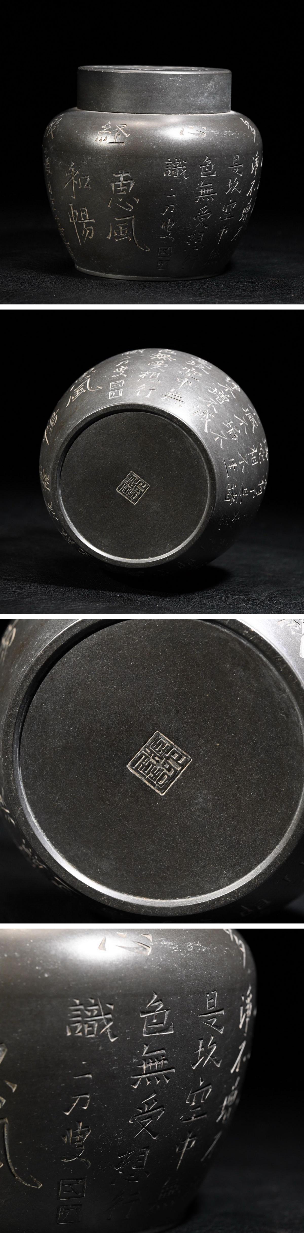 【清】関西某オークション購入 中国・清時代 本錫 漢詩紋茶入 極細工 古置物 古擺件 中国古美術7L12-HQ6