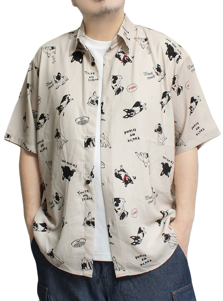 | 商品名 | 【新品】 5L ベージュ 半袖シャツ メンズ 大きいサイズ 接触冷感 シルクタッチ 総柄 プリント イージーケア アロハシャツ |