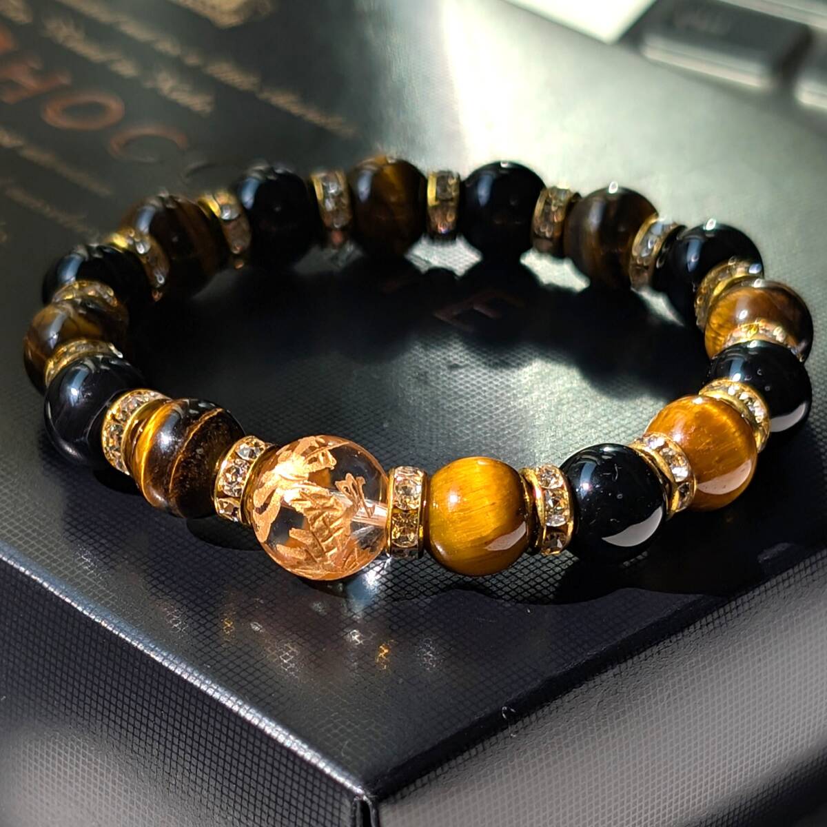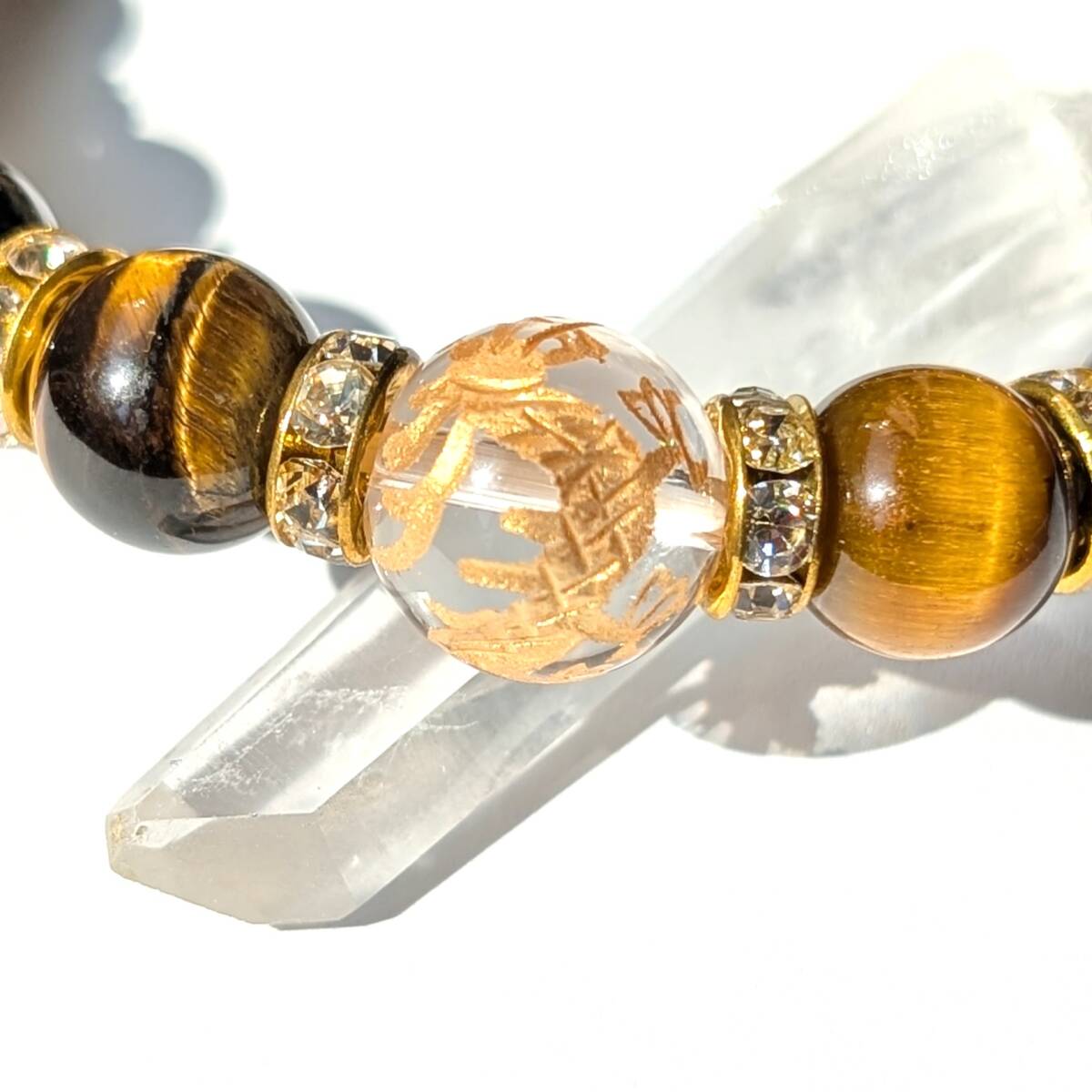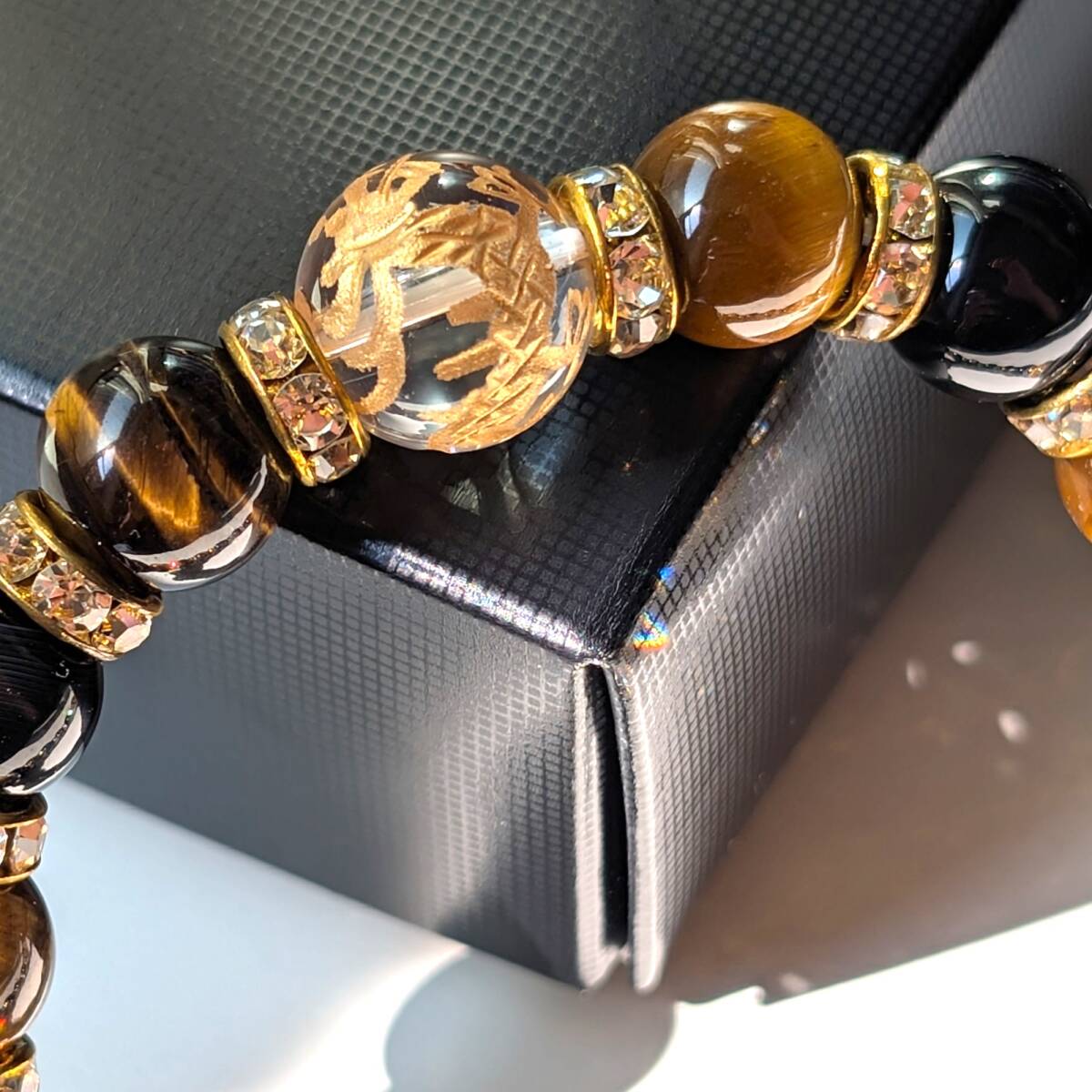 祝!阪神タイガース優勝セール 判断力を高める パワーストーン 金彫皇帝龍本水晶 タイガーアイ オニキス ブレスレット 数珠 12mm 10mm