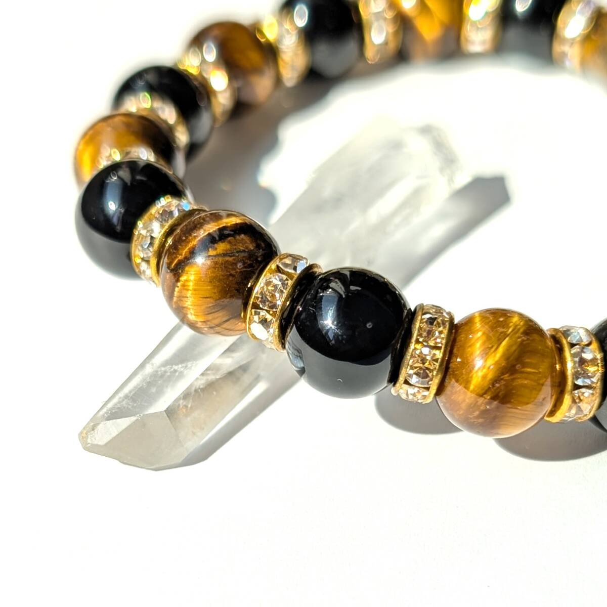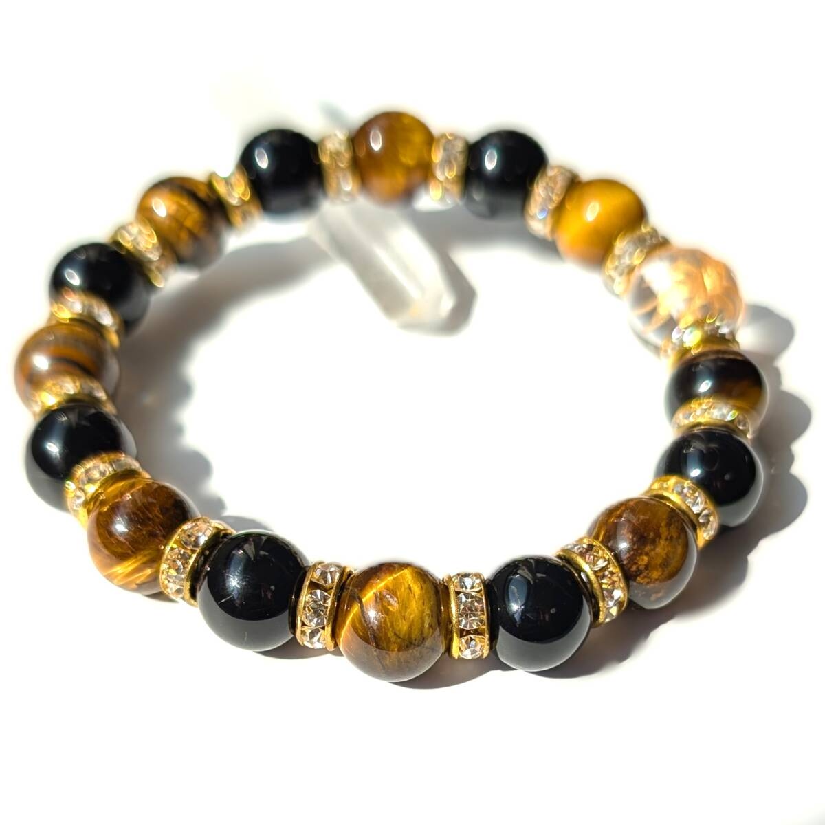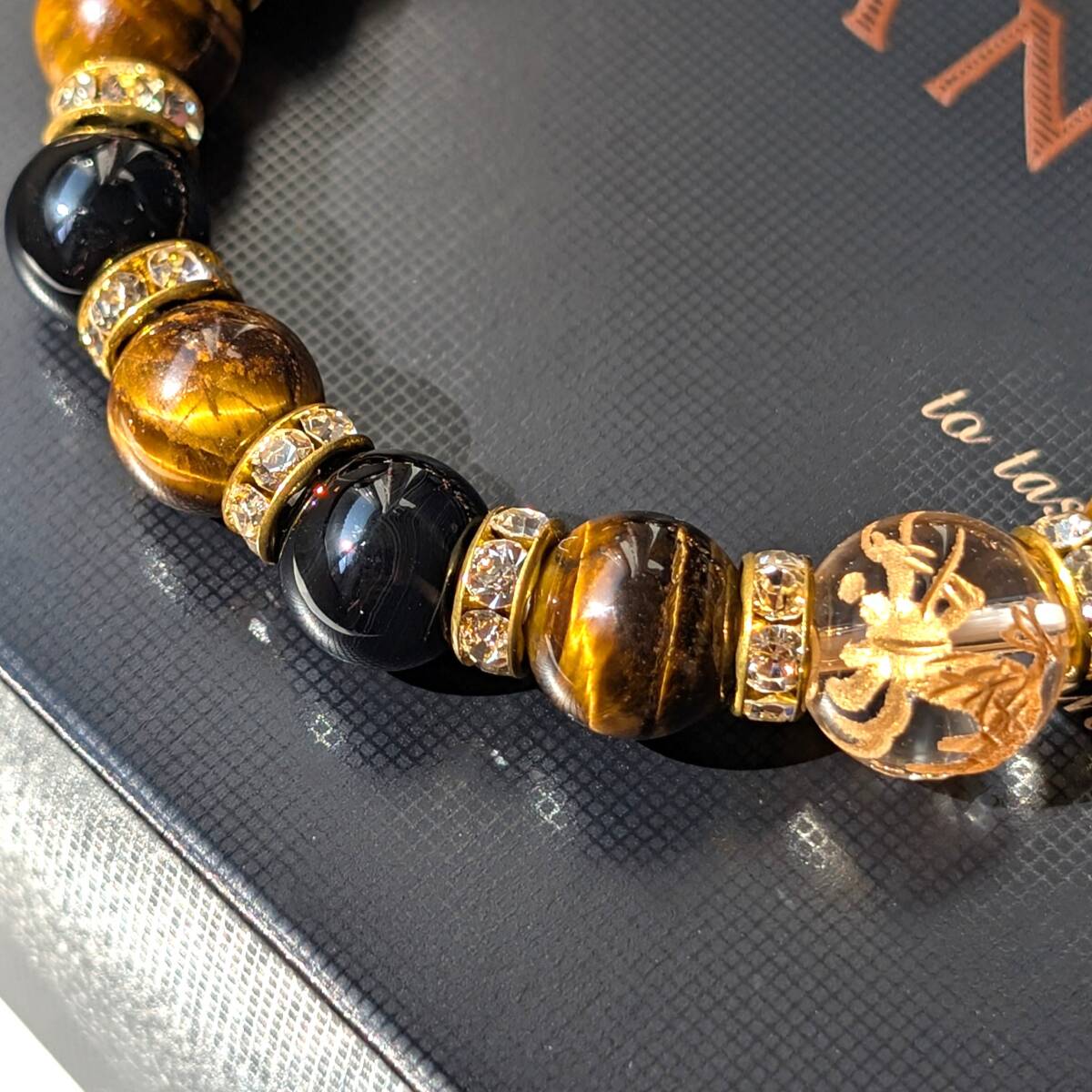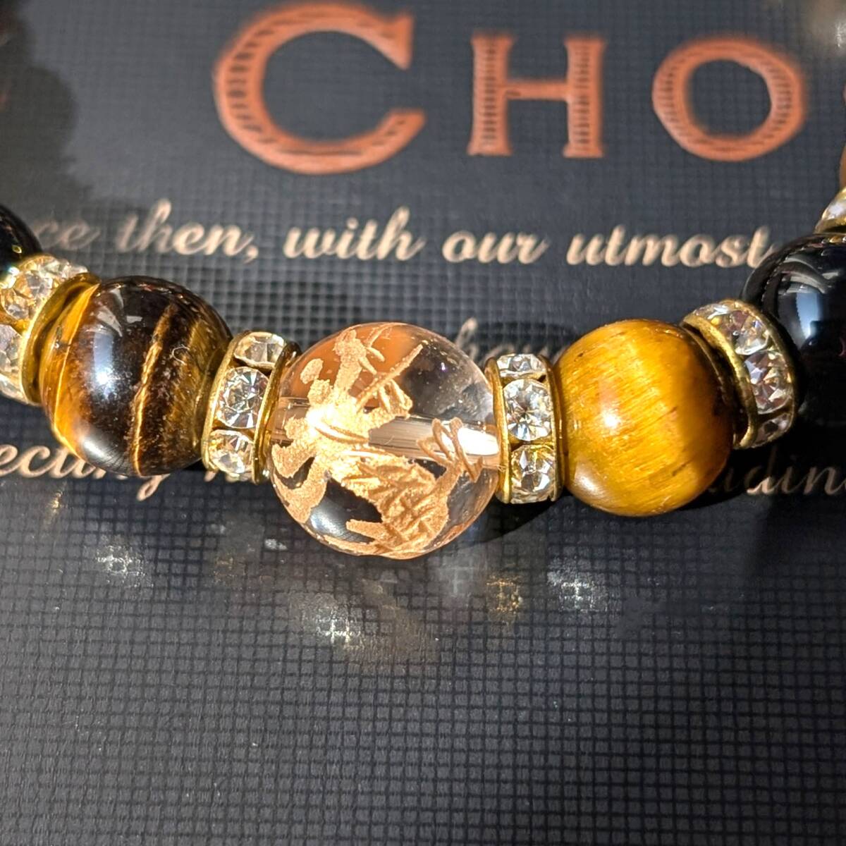 祝!阪神タイガース優勝セール 判断力を高める パワーストーン 金彫皇帝龍本水晶 タイガーアイ オニキス ブレスレット 数珠 12mm 10mm