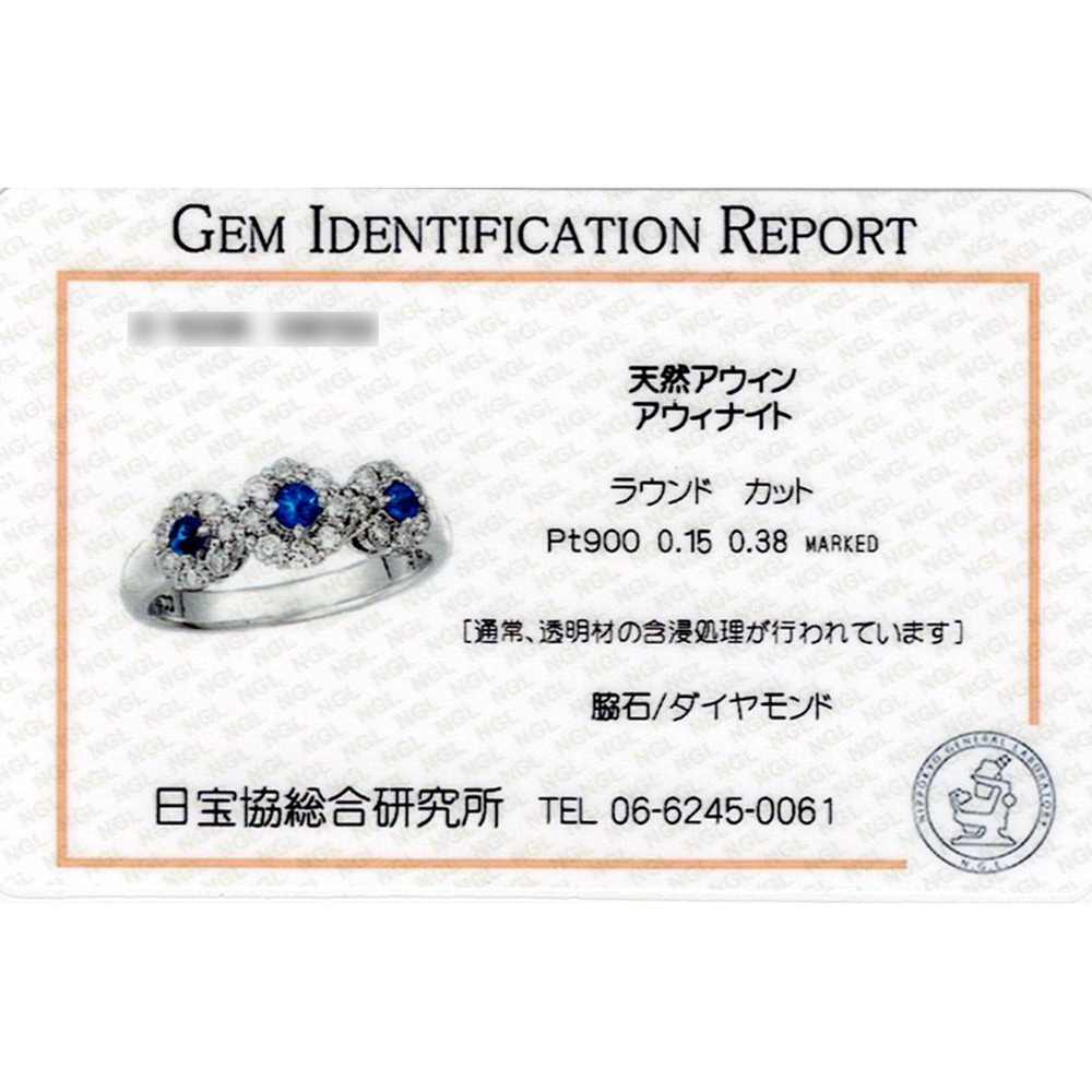 商品名 | Pt900 アウイナイト 0.15ct ダイヤモンド 0.38ct リング 日宝協総研カード鑑付き | ||