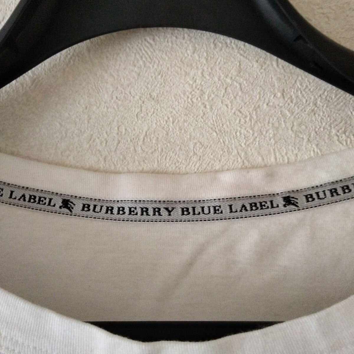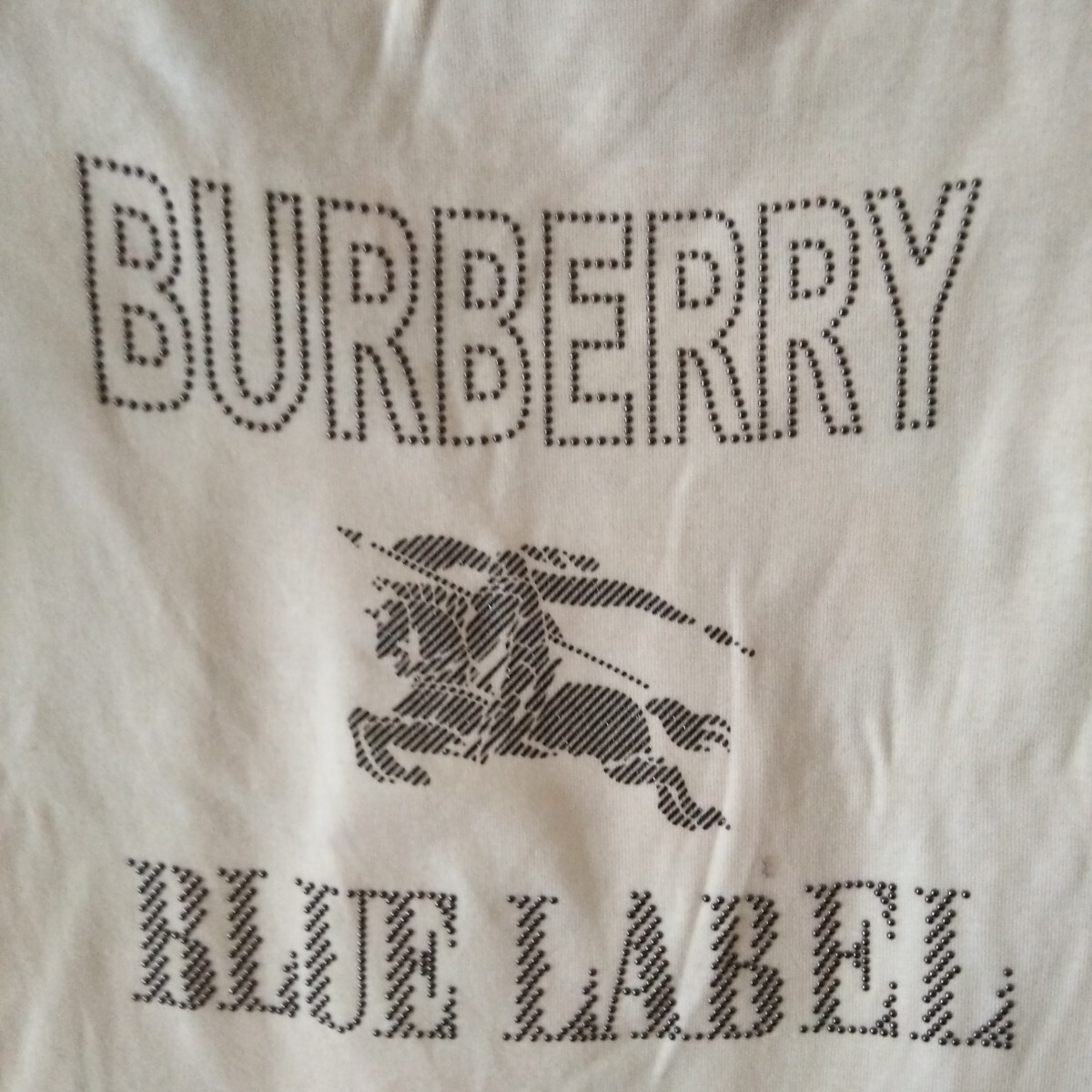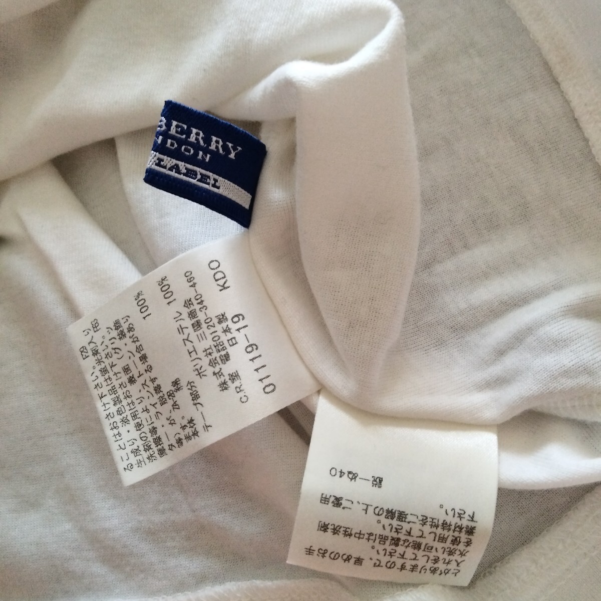 BARBERRY,ブルーレーブル、フロントロゴはプリントじゃなく小さなリベットで作ってあり、センターのロゴマークのみプリントです、バーバリーの拘りが見えますね、大きく開いた丸首もきっと目立ちますよ!