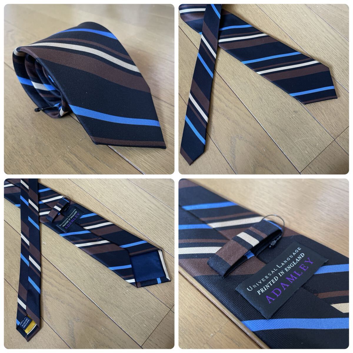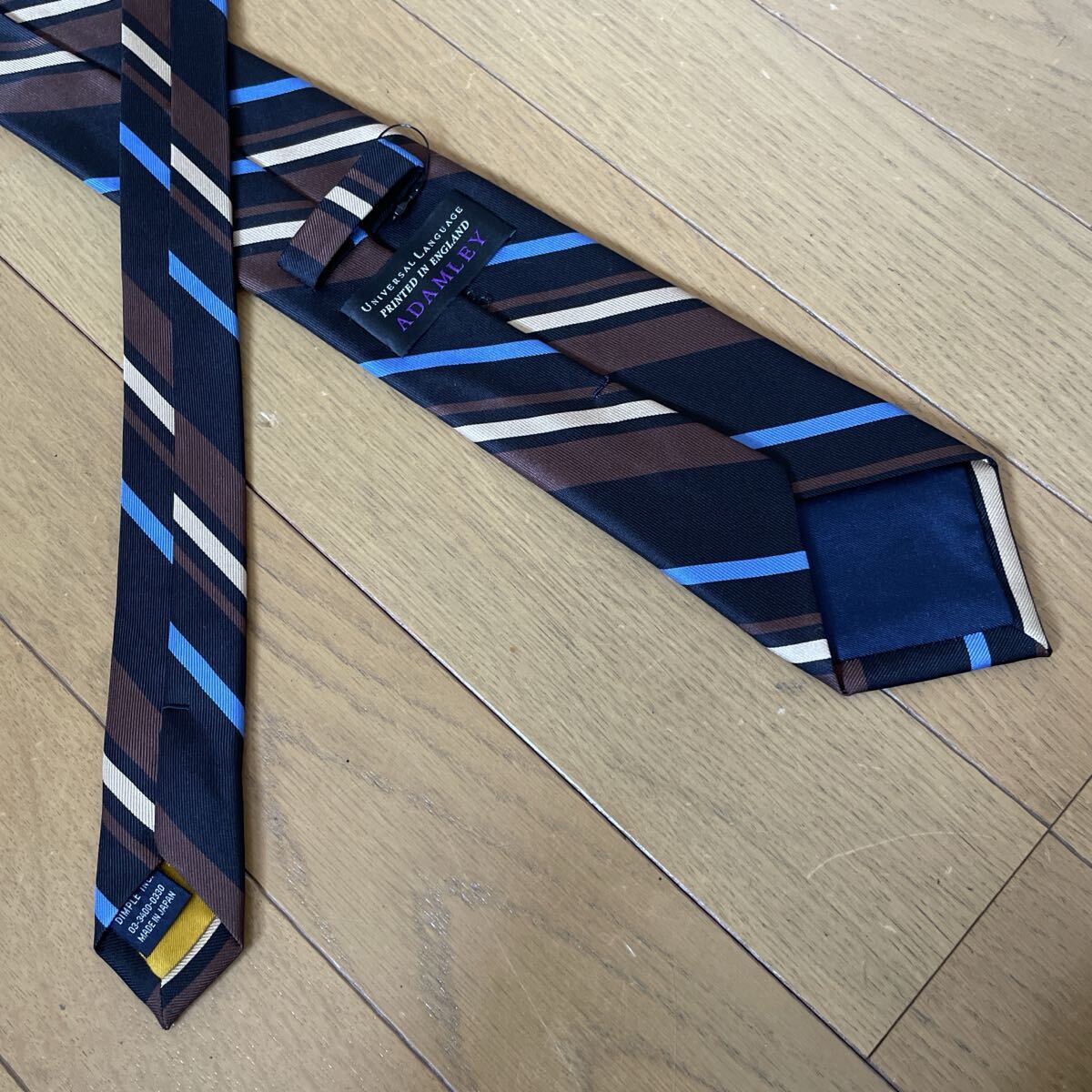 ユニバーサルランゲージからADAMLEY別注のシルクタイの出品です。
