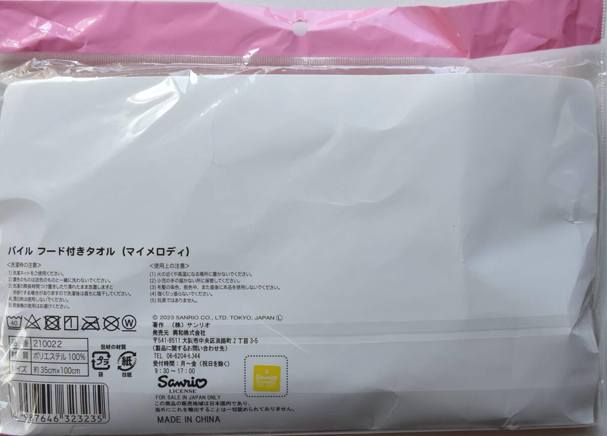 ・マイメロディ パイル フード付きタオル 35㎝×100㎝ サンリオ 未開封新品 です